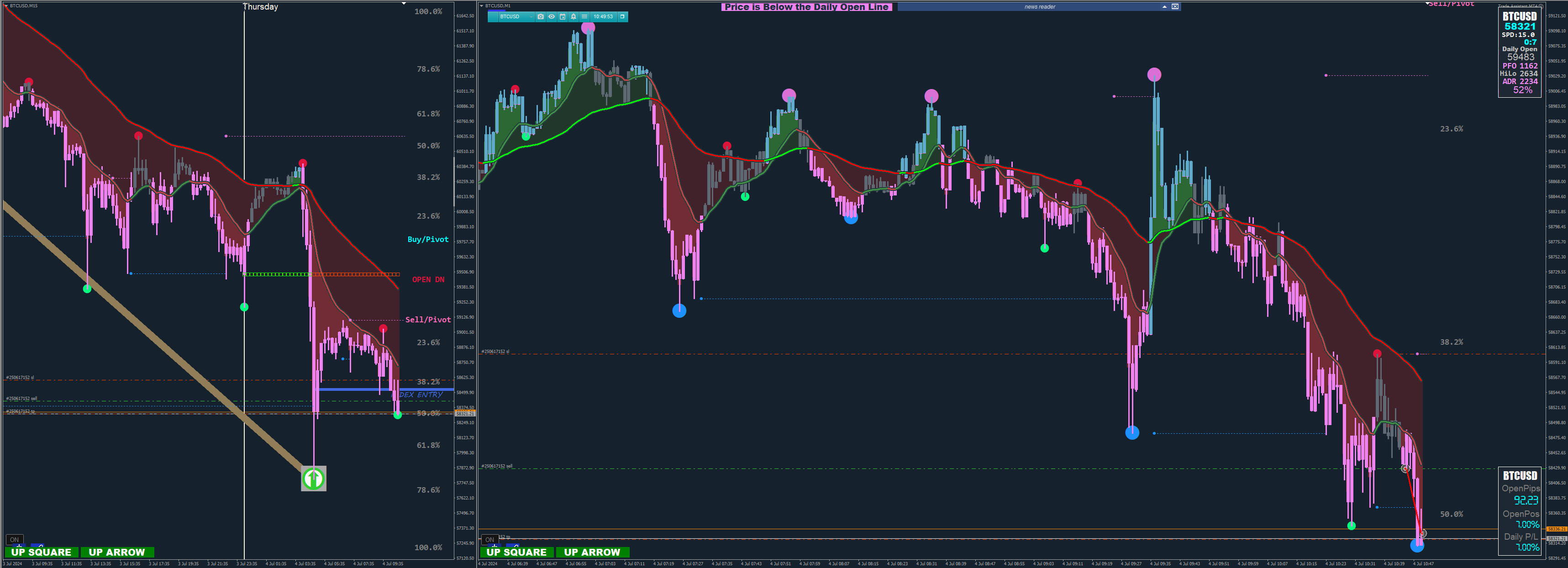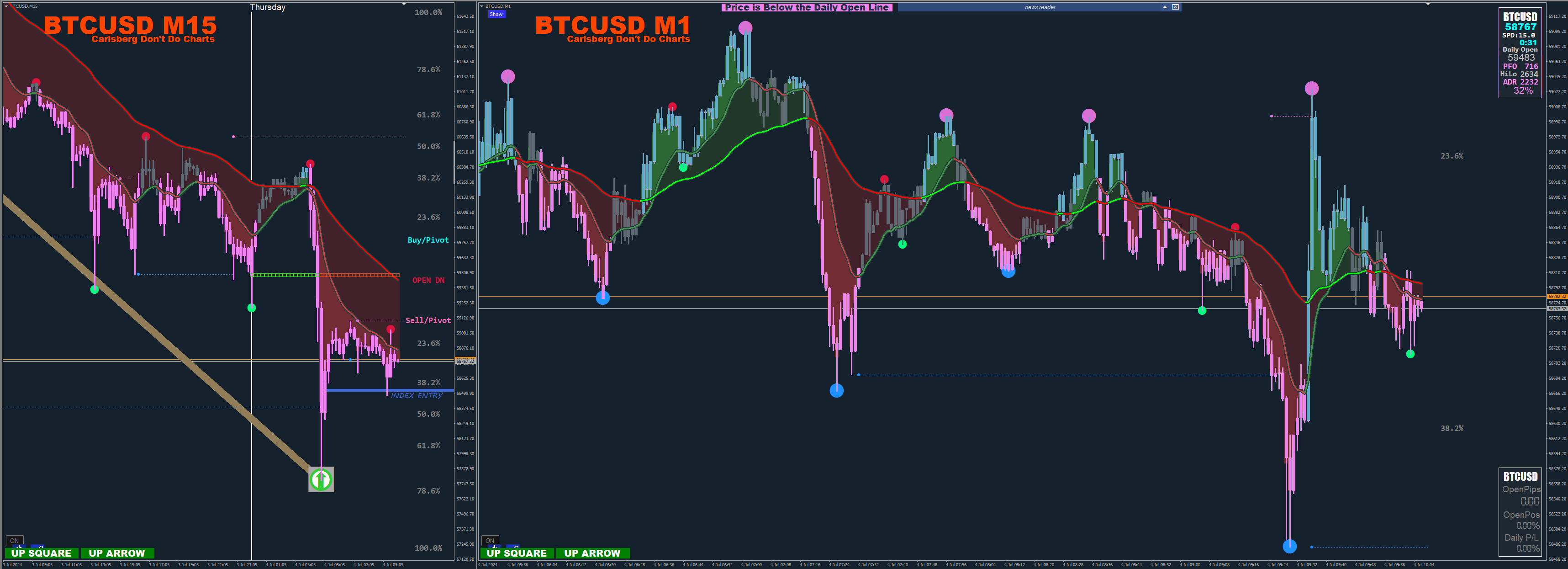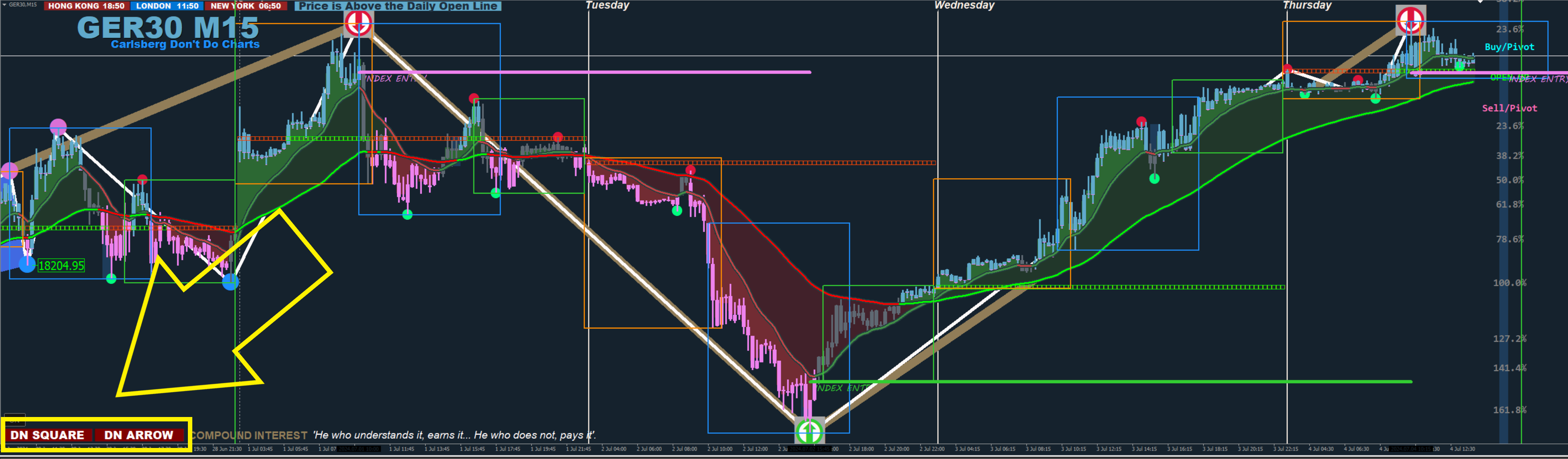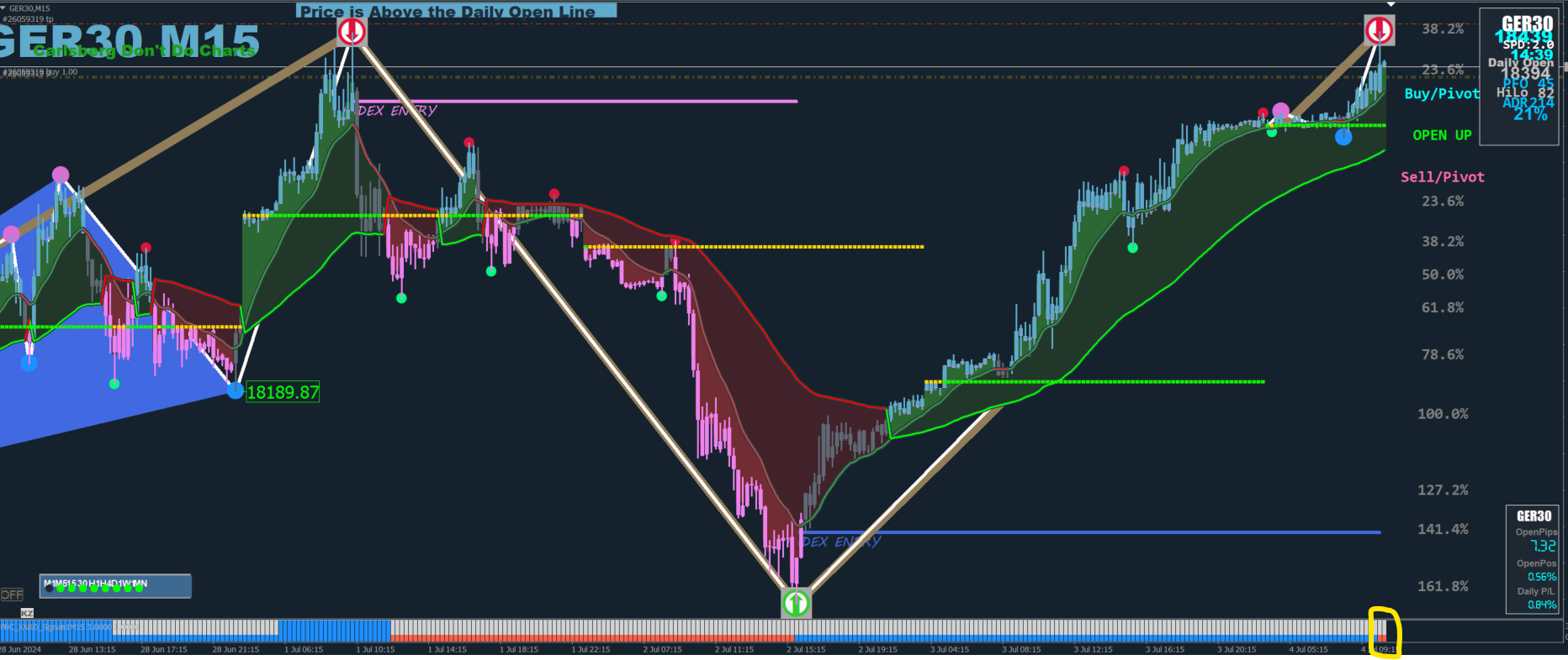 I like to have two charts on my screen, in this example here you can clearly see on the M15 chart that we are still in a downtrend, that keeps me from going long on the lower time frame (M1 chart in this case).fnz wrote: Thu Jul 04, 2024 3:05 pm Perhaps I missed it, but is there an indicator like a trendbox that would inform about 144, 576 on higher time frames?