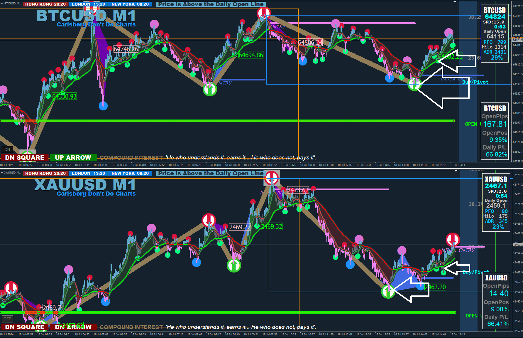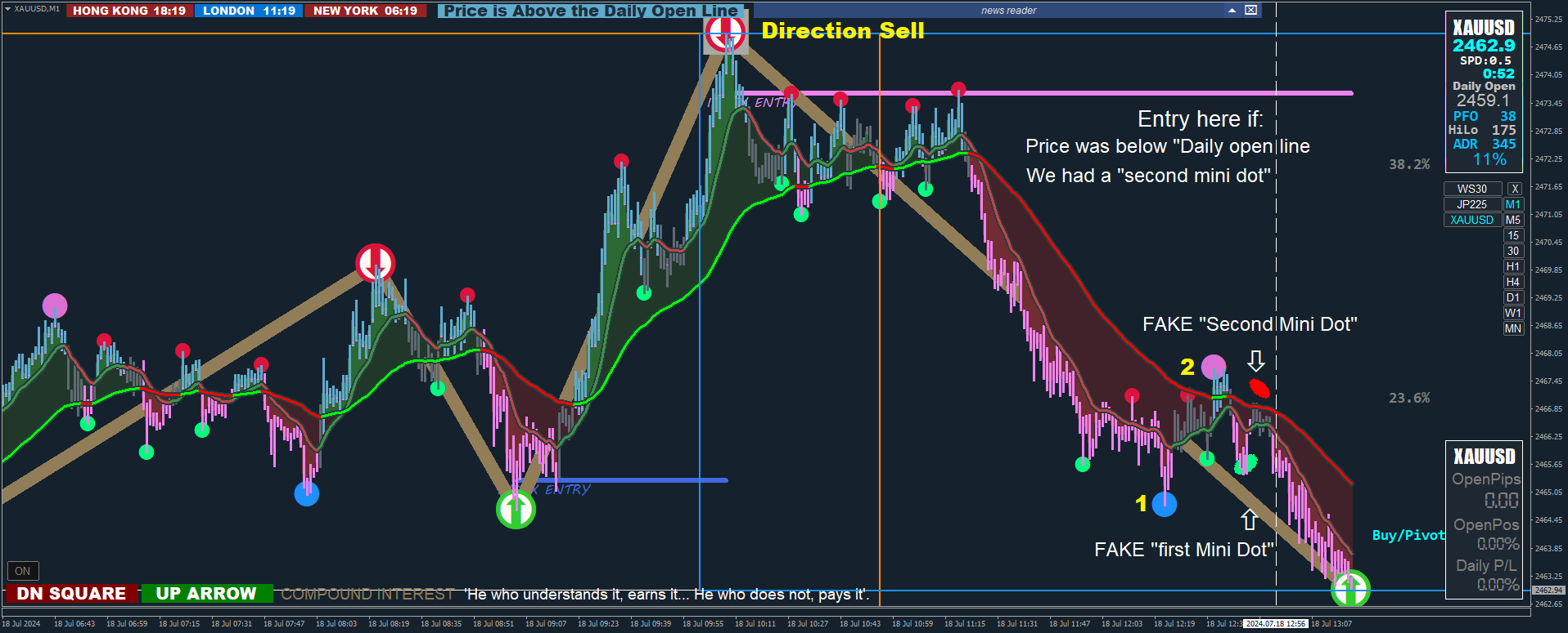 My recommendation for your situation, do not open anything. Only mark the positions based on your knowledge have in this moment and write notes on the chart. It helps a lot to you in the right moment.hanozox wrote: Thu Jul 18, 2024 7:28 pm Been watching Gold all day, and I was hesitant to Buy because of the big SEMA Down Arrow on the upper left. I was waiting for it to go below the D.O then find an entry. Based on the image you added, it would've been okay for me to enter Buy?