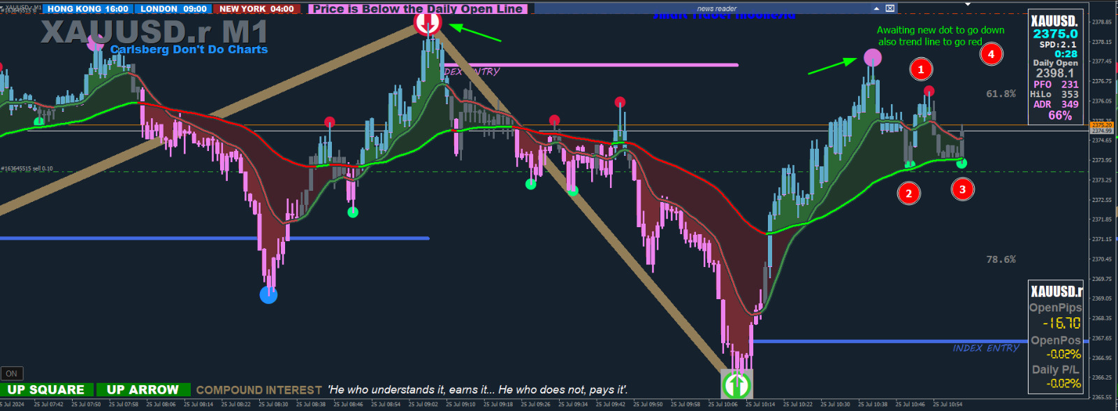 The magic for me is the wave trend it does not repaint whatsoever and helps me confirm XUV6-XARDFX HL  which is the backbone of my set Thanks to XARD from my experience when it's green it's green and vice verse even drastic whips during News won't change the histogram as long as the trend is in play, unless its a total trend change and then it changes and stays in history and with history it helps prove the trend direction for visual trading effectively the only downside is it is late by a few bars but for Xards second dot trading that is not a problem its perfect since we don't enter on the initial trend but rather the re-entry trend  as you can see above that first initial push downwards Is Confirmed wave trend already indicated the sell-of giving me a bearish future bias at that point I switch to m15 and wait for the second dot to develop and use the Jurik half trend to maintain my trade - ps Jurik HT is one hell of an indicator shows consolidations when its moving sideways great exit and entry if you time it well The magic for me is the wave trend it does not repaint whatsoever and helps me confirm XUV6-XARDFX HL which is the backbone of my set Thanks to XARD from my experience when it's green it's green and vice verse even drastic whips during News won't change the histogram as long as the trend is in play, unless its a total trend change and then it changes and stays in history and with history it helps prove the trend direction for visual trading effectively the only downside is it is late by a few bars but for Xards second dot trading that is not a problem its perfect since we don't enter on the initial trend but rather the re-entry trend as you can see above that first initial push downwards Is Confirmed wave trend already indicated the sell-of giving me a bearish future bias at that point I switch to m15 and wait for the second dot to develop and use the Jurik half trend to maintain my trade - ps Jurik HT is one hell of an indicator shows consolidations when its moving sideways great exit and entry if you time it well