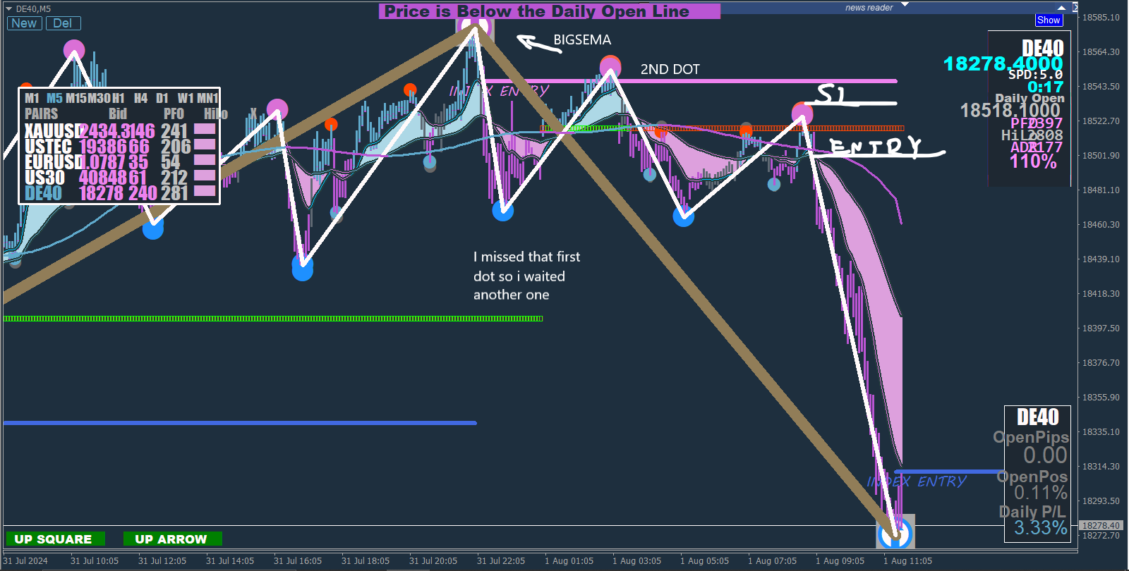 I have a DN Square (Red Symbol), so I only consider SELL trades.