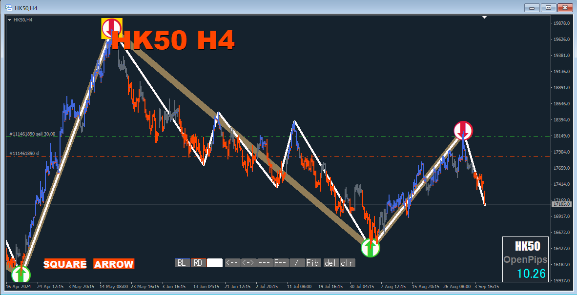 Trade with the 2nd arrow in the direction of the square arrow in H4.