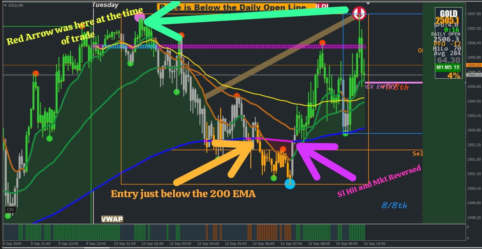 Conio31 wrote: Tue Sep 10, 2024 6:10 pm Can anyone tell what am i doing wrong here? Its my 6th SL hit since yesterday. Aren't these the rules that we have to check our bias visa red/green arrow or sqaure semaphore then wait fior 2nd red/green or pink/blue dot and then enter when price crosses 200 ema? What am i missing here?