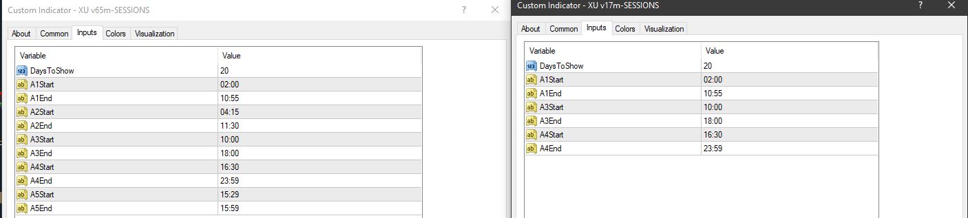 The sessions indicator is present in all versions of "XARD - Simple Trend Following Trading System", but in lower timeframes, like M1 goes unnoticed. XU v65-Setup :: post1295520321.html#p1295520321