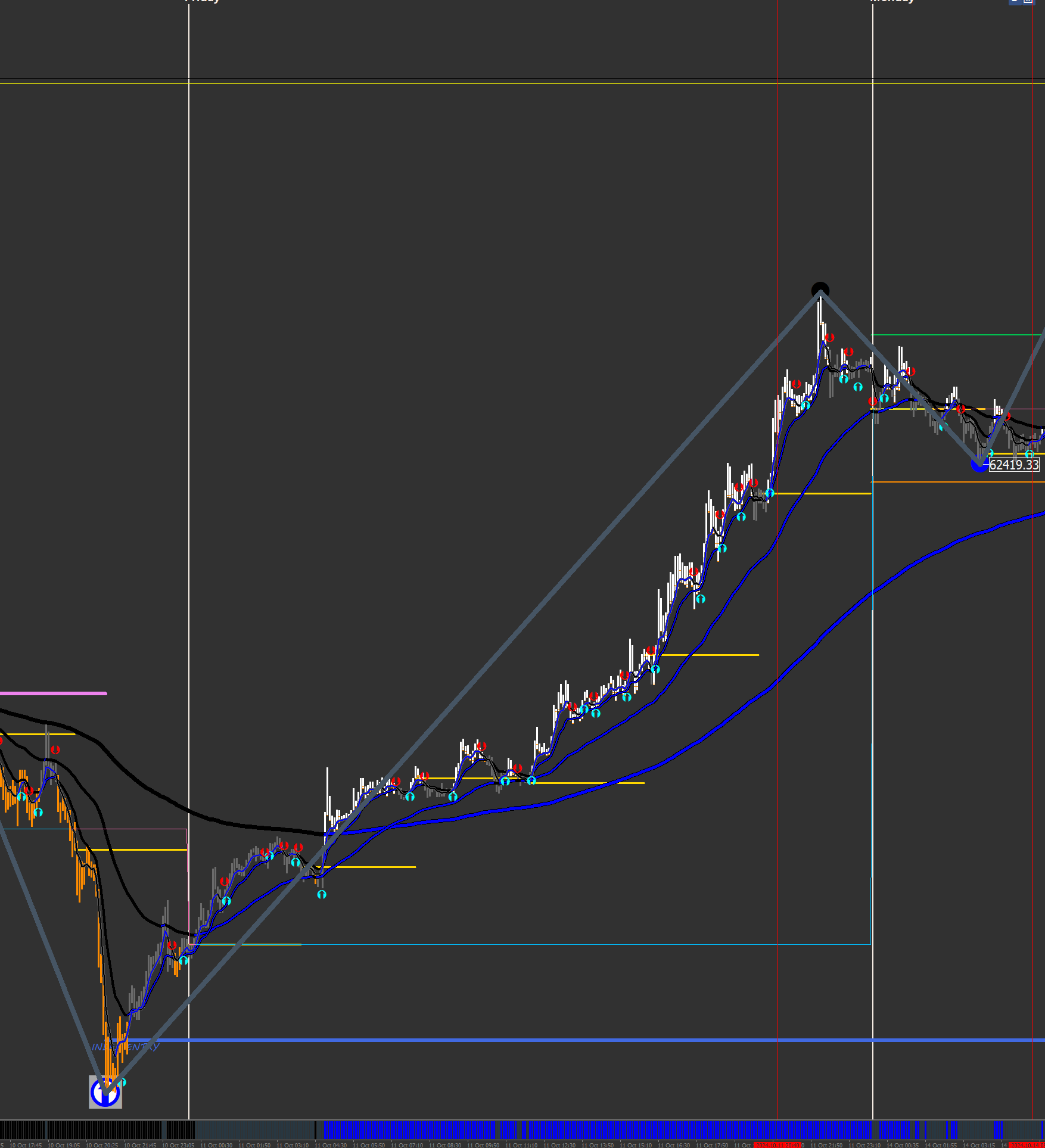 The M5 chart shows a Blue Dot 2nd Dot buy entry set-up in the works. I believe this would have settled the question for you without any hand wringing.