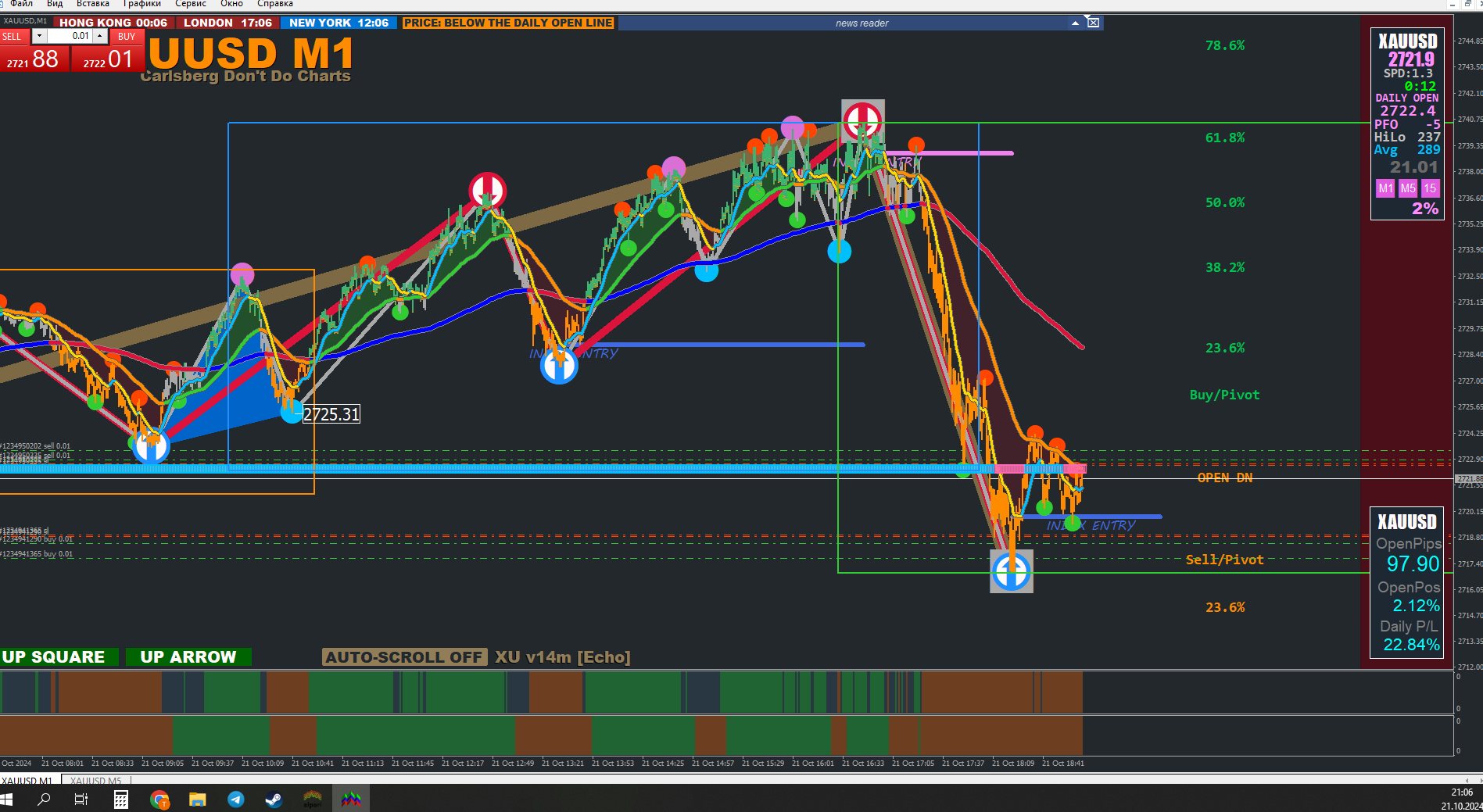 1. **Overall Uptrend:** Price is consistently above EMA 200, EMA 13 > EMA 55 on both charts.