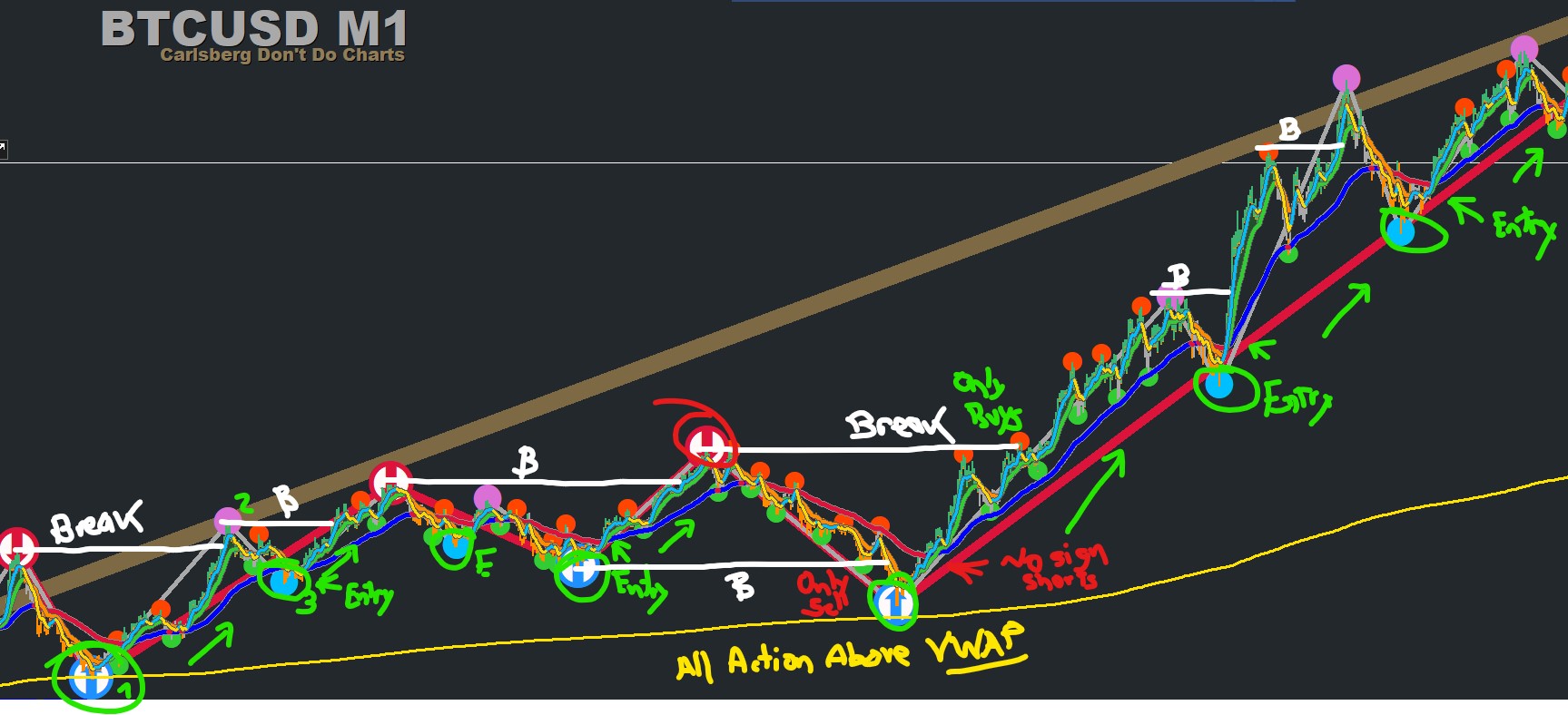 *wait for the 2nd dot to appear, wait for the ema cross.