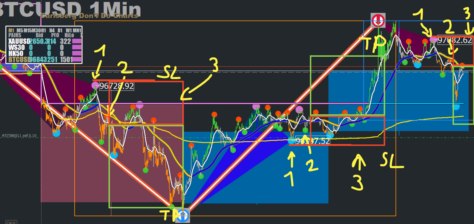My strategy? I was only trading second DOT points on the M1 timeframe.