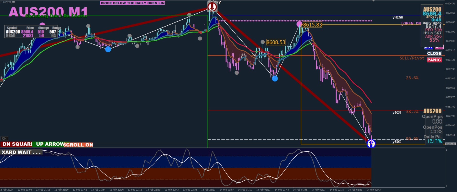 Last trade, AUS200 open.