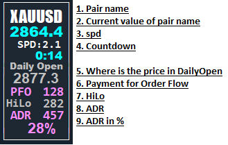 This code is a highly customizable charting indicator, designed to display several pieces of information about the current market state, including daily open/close prices, bid/ask values, Average Daily Range (ADR), and other market statistics. It provides a customizable InfoBox with configurable colors,