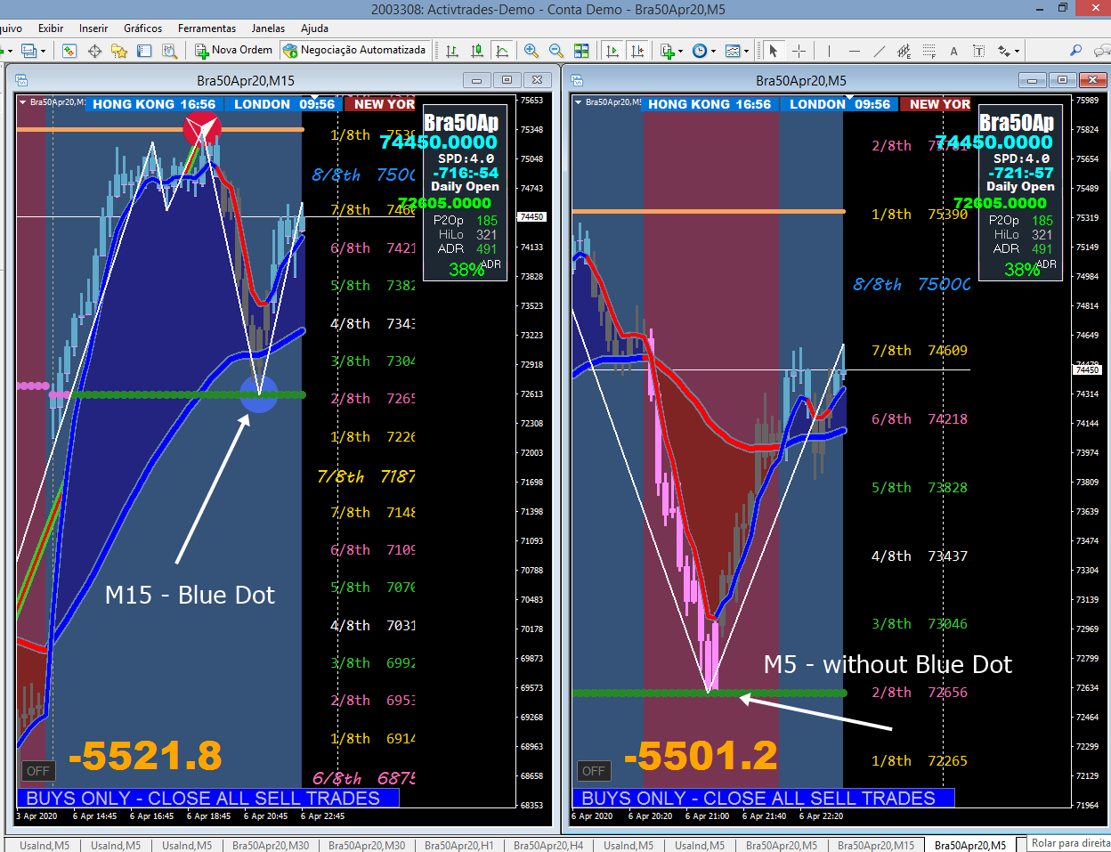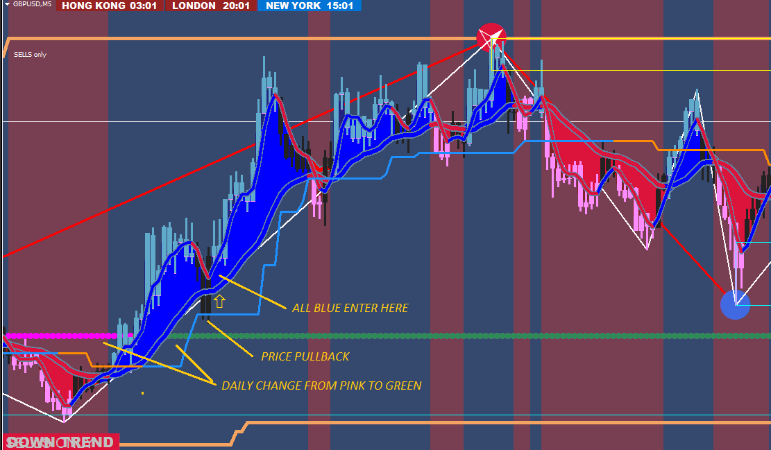(Xard words) "When there is a Blue DOT on your chart you take Blue Candle BUY trades only, when there is a Red DOT on your chart you take Pink Candle SELL trades only.
