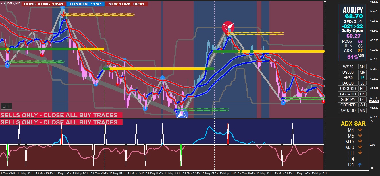 if Price is BELOW the Daily Open then take PINK SELL CANDLES.