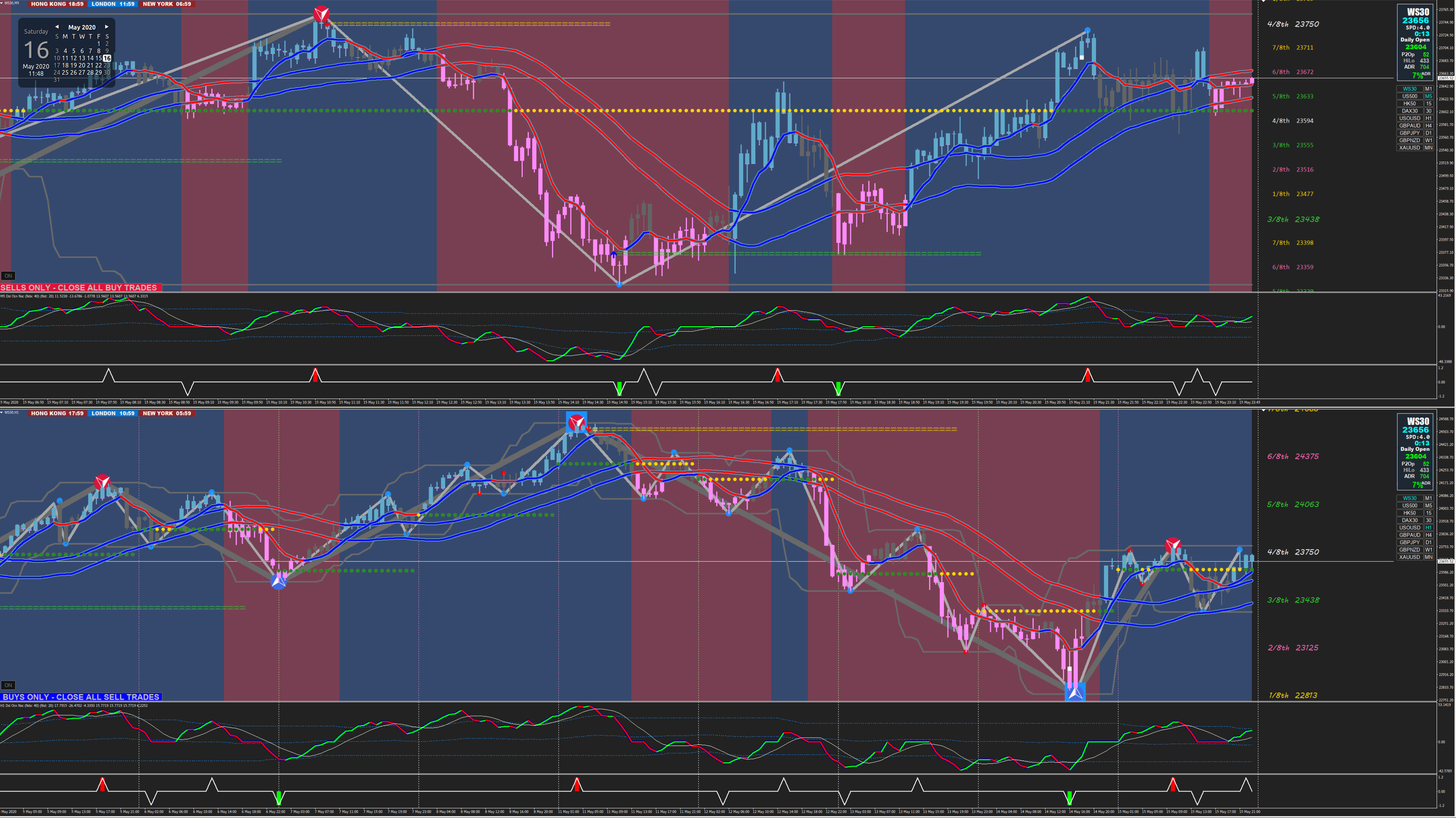 if Price is BELOW the Daily Open then take PINK SELL CANDLES.