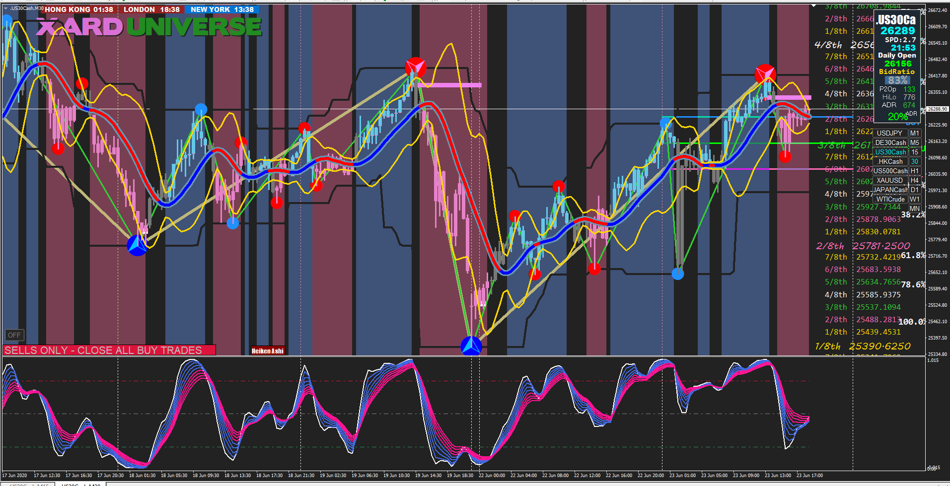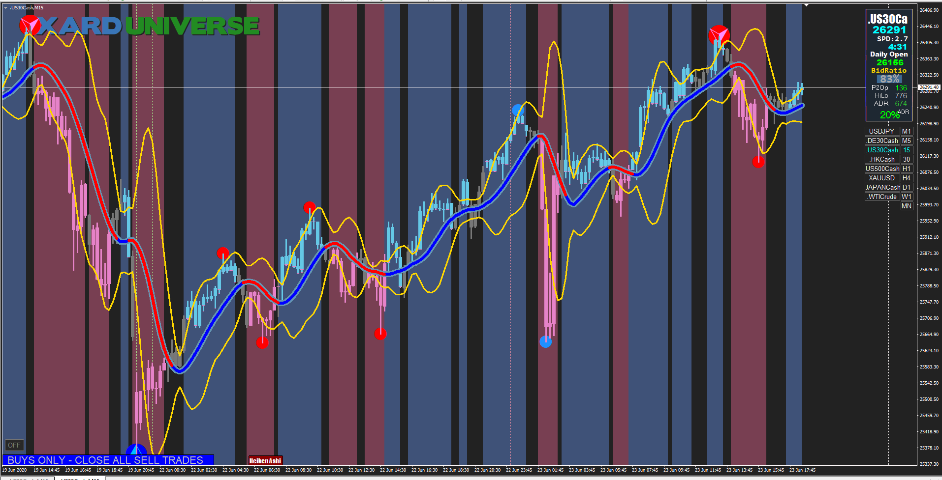 TREND & STOCHASTIC must match before Candle is Blue (Buy) or Pink (Sell).