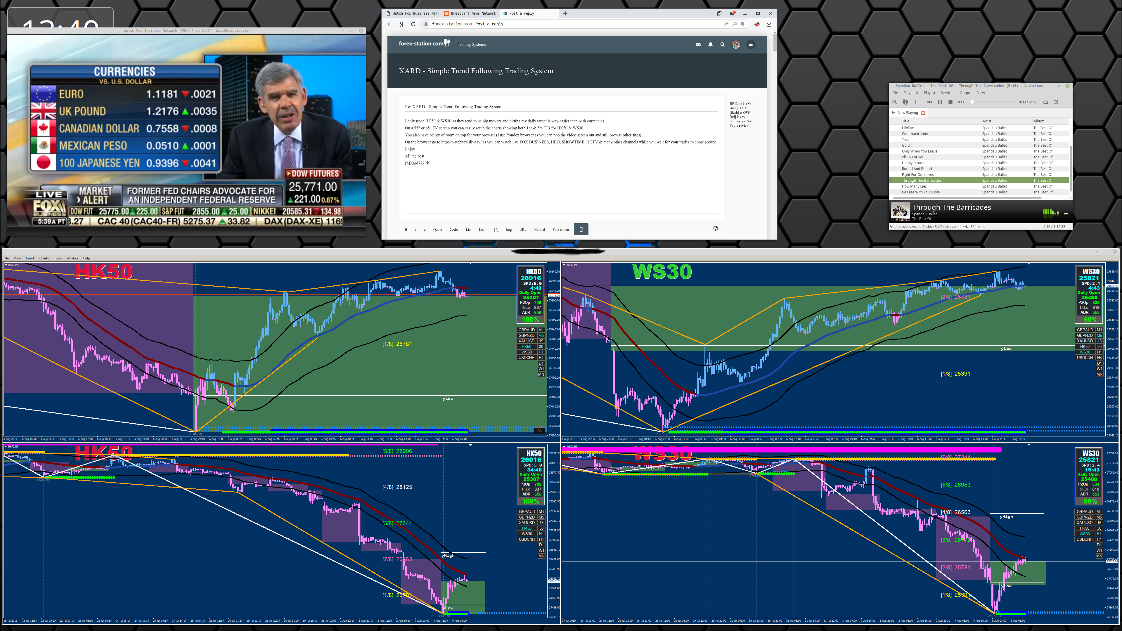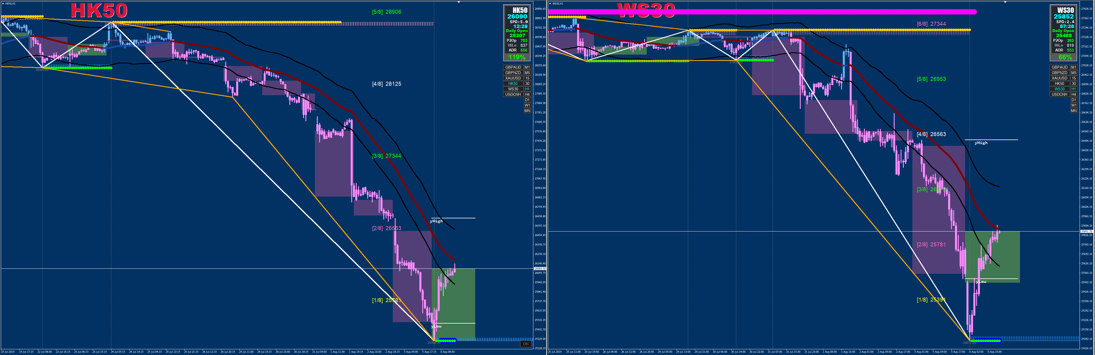 On a 55" or 65" TV screen you can easily setup the charts showing both 1hr & 5m TFs for HK50 & WS30.