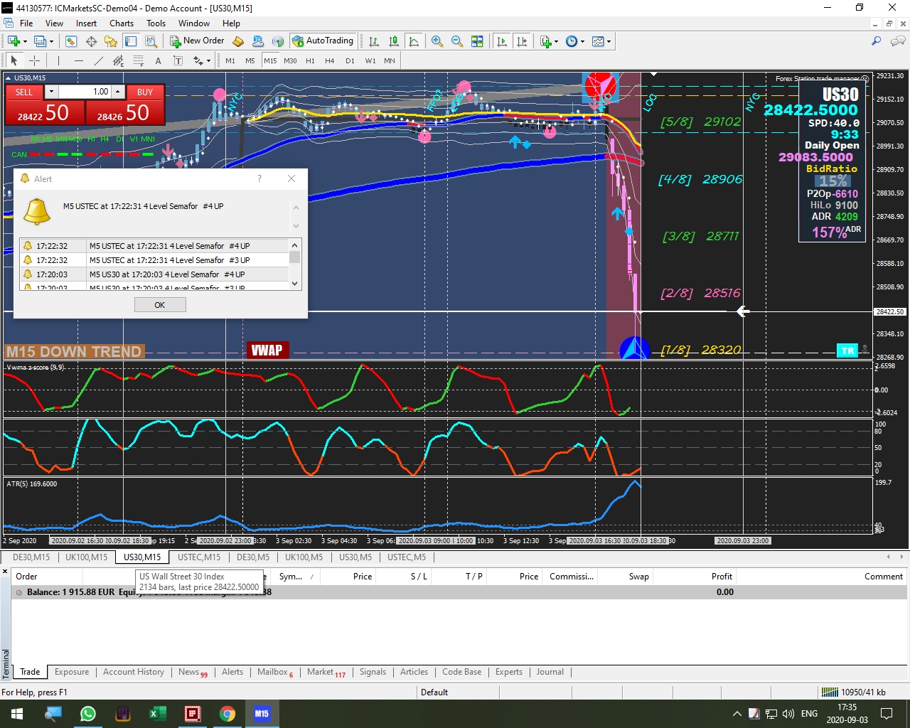 It works great along with the VWAP and you have the added advantage of the 15min Semafors.