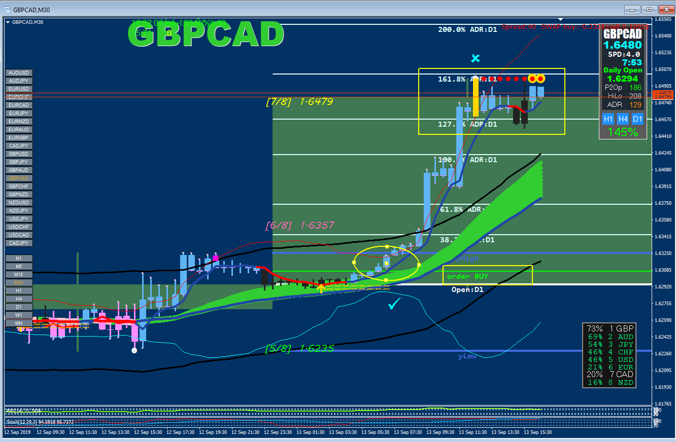 As the day progressed we see that GBP is a strong Base currency and that the Signal line showed support throughout the rest of the day as there was no change in it's colour meaning we could have held on to our BUY Trade that bit longer for bigger profits greater than the 61.8%. The Trend line was BUYS ONLY and the Signal line was saying STAY IN THE TRADE.