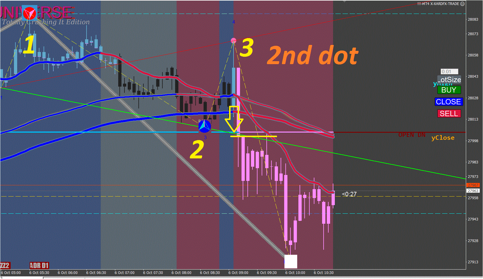 Once we recognise this type of 2nd dot move we simply repeat on all the UP and DOWN cycles day in day out.