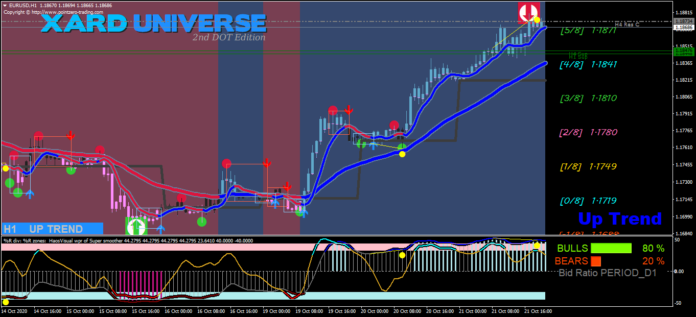 In trading terms this means PRICE will continue to go higher and make higher highs and higher lows UNTIL it reaches a SUPPLY level (or RESISTANCE) where sellers are waiting to SELL. Eventually the sellers will create a pull back and a lower high and lower low and then the RED semafor square/dot will be confirmed and glued in place.