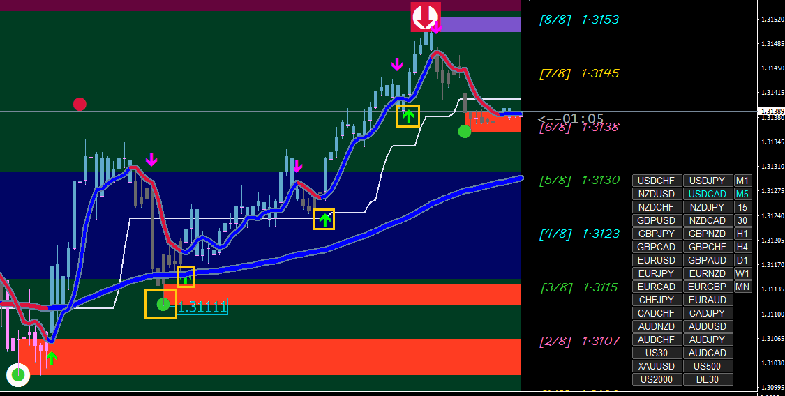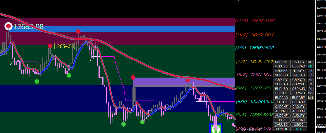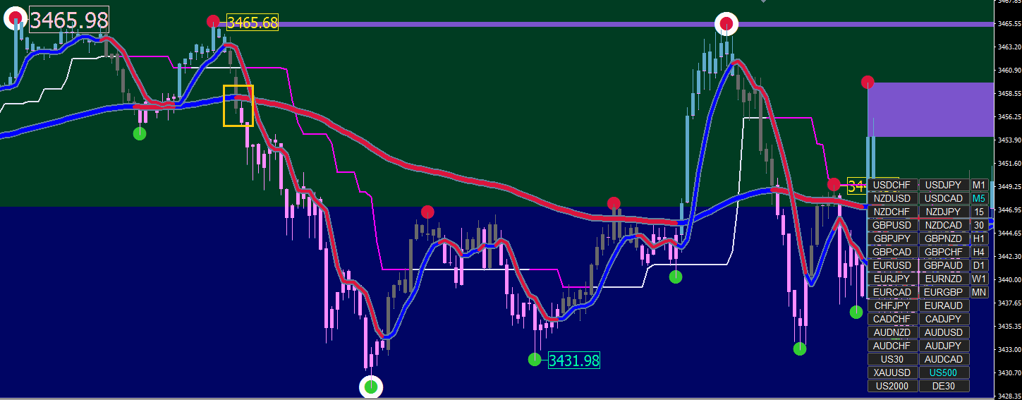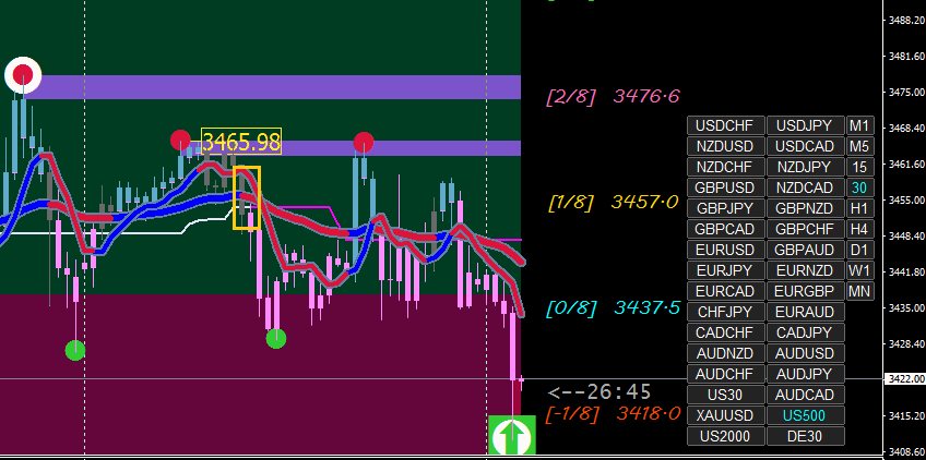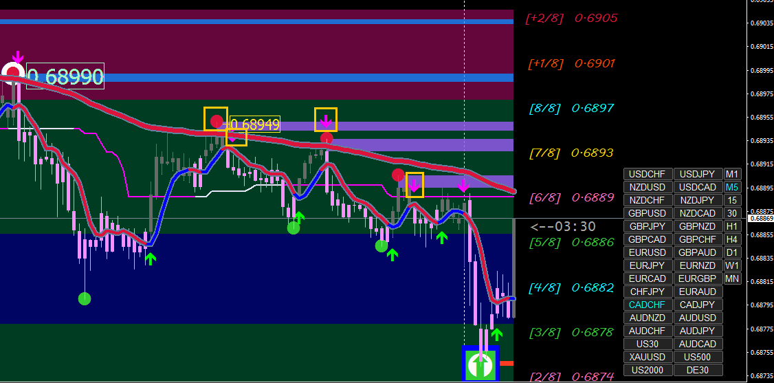 The strategy is to IGNORE the last semafor dot/square and trade off the CONFIRMED semafor dot/square on the next higher time frame. (XARD: ...and all this time I thought confirmation was at the 2nd DOT).