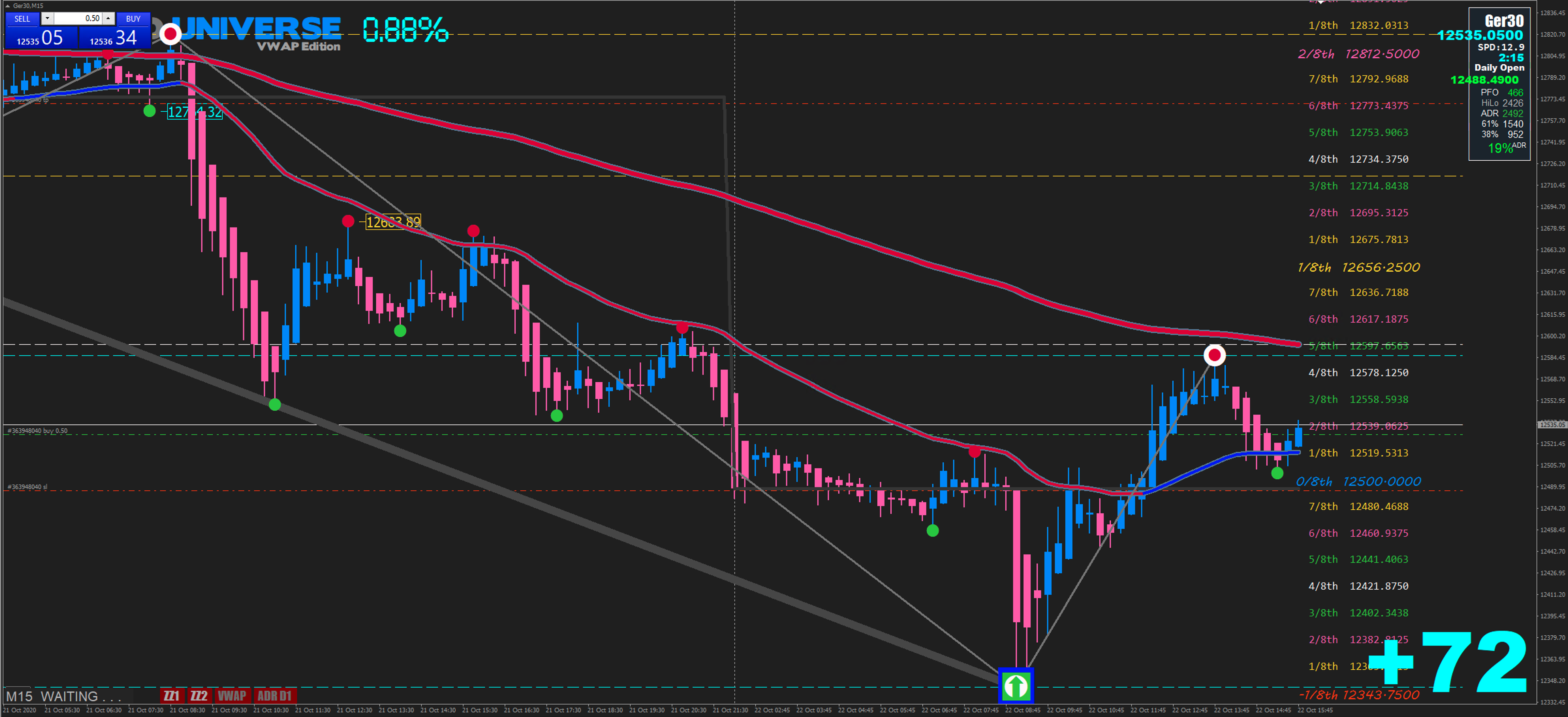 I said to myself that the market was going down (based on 4hr not crossing above the Trend) and placed a SELL (as you do).