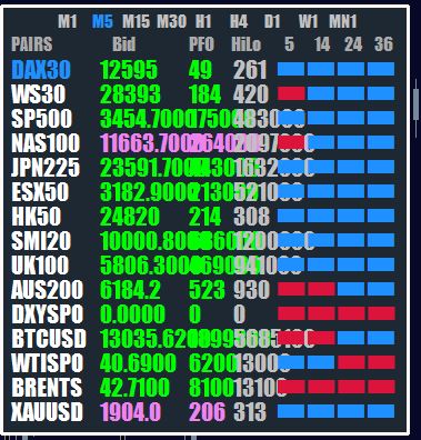 Thanks Xard for the update. My broker uses slightly different symbols for indices and commodities. Could you please help me modify the XU-Dash2 indicator with the symbols below;