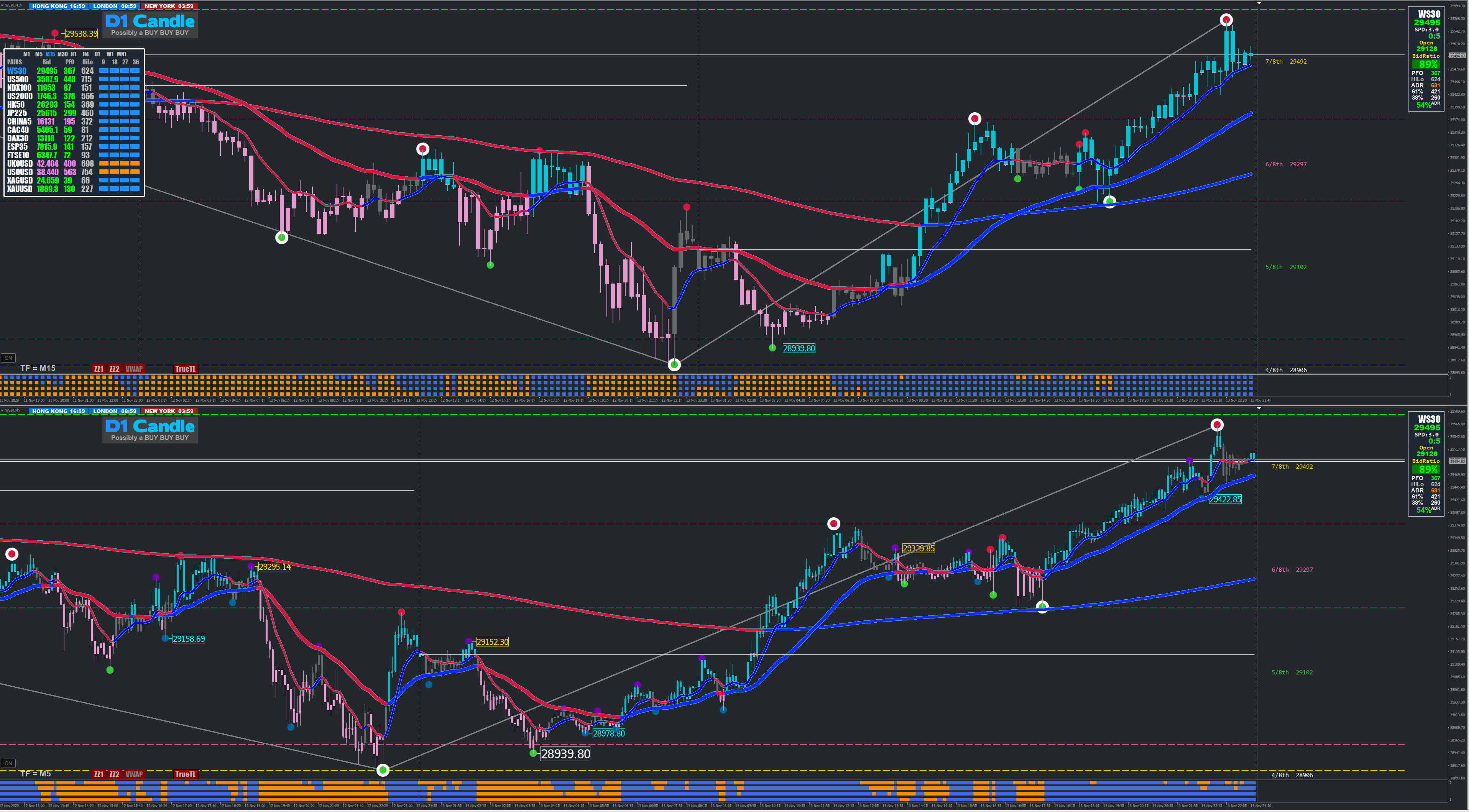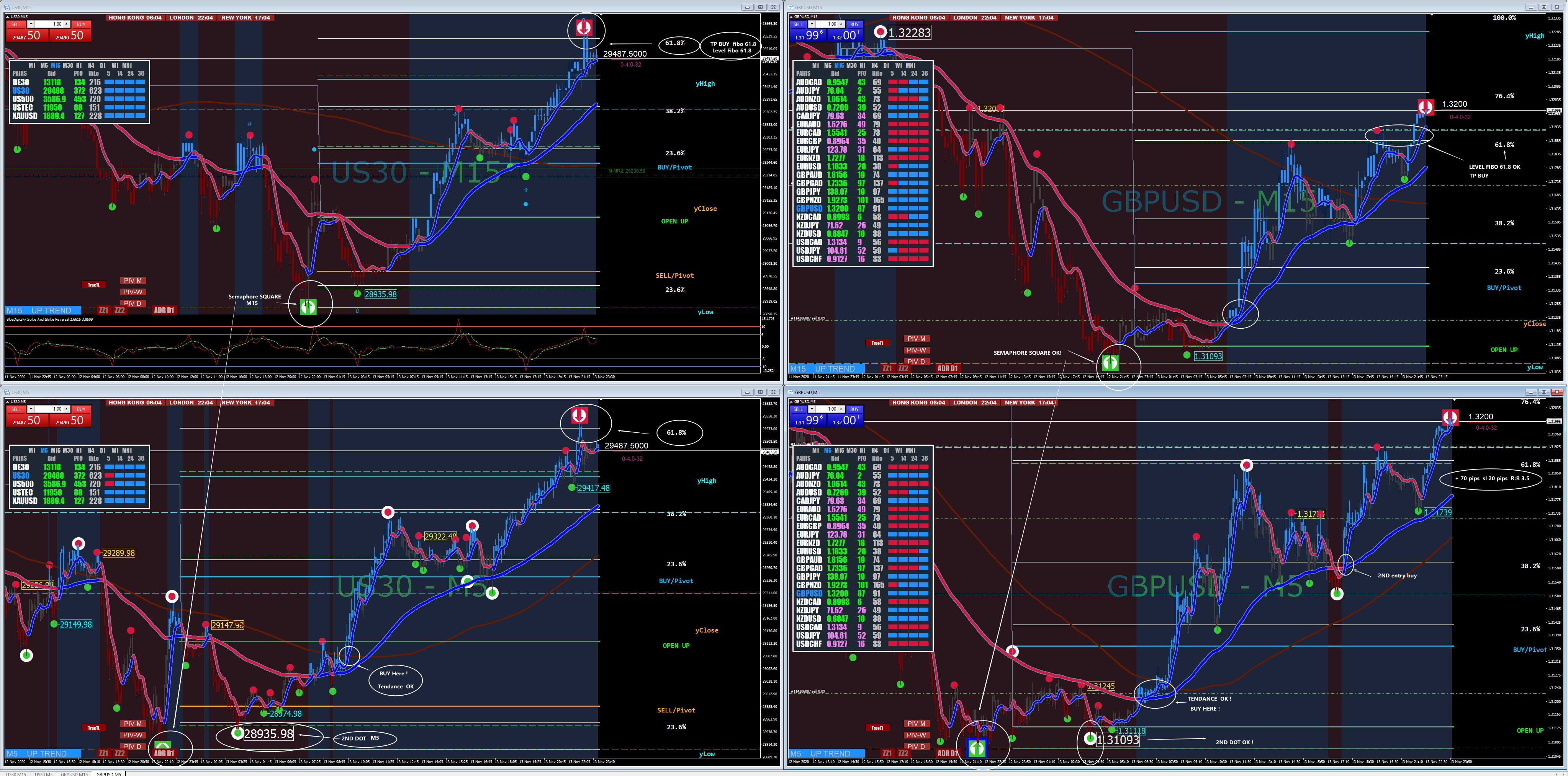 Today examples of Trade's Xard 2nd DOT System Index Dow +450 pts and GU +70 pips.