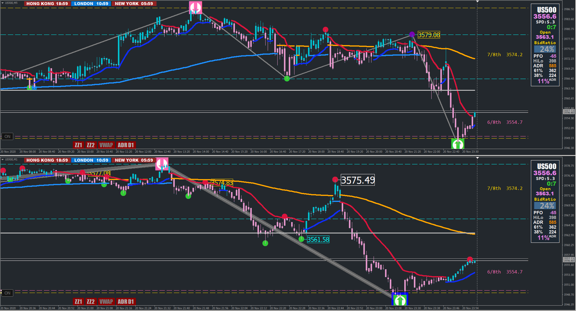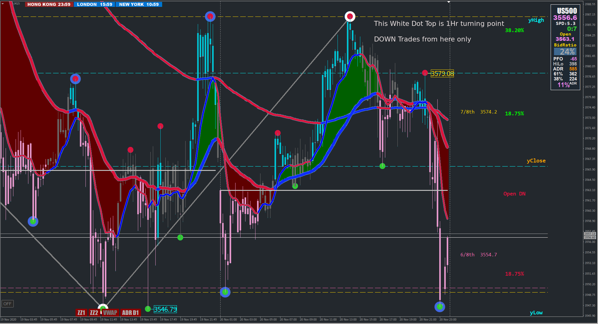See the Xmas Setup screenshot showing the 1hr Turning point on the 15m chart.