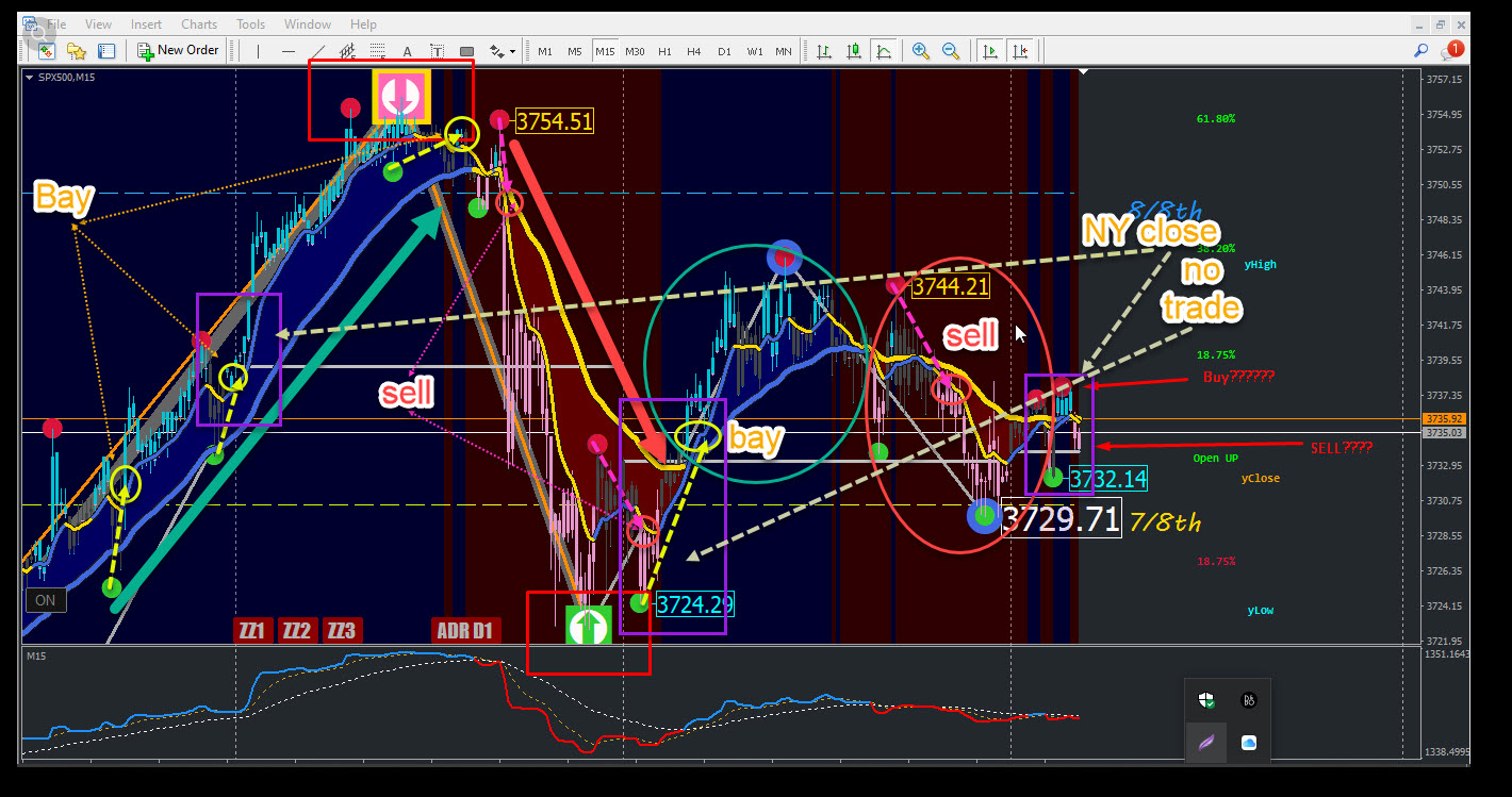 I'll try to put in my 5 cents. I have shown in the figure with arrows how I understand the system. Points where I would look to buy or sell. You are looking for a deal on the American SP500 when the Americans themselves have already left work and are about to rock out at a party.