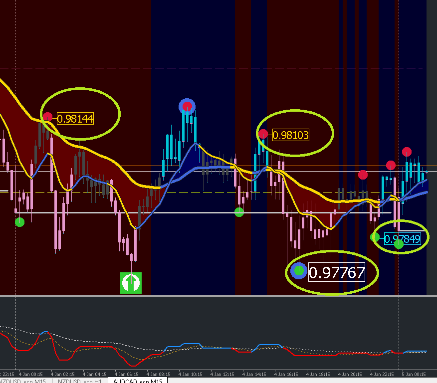 personally I dont have a big monitor to have two TF on One screen so I have found it useful as others have mentioned to have the higher TF EMA on the chart and have found layering a second VQ on the chart adds a higher perspective with alerts for changes at that level. One for MA 72 and 144 with a width of 5 and the other at 9 and 36 . (But as Mentioned for the case of disclosure I wouldn't yet consider myself profitable.....YET