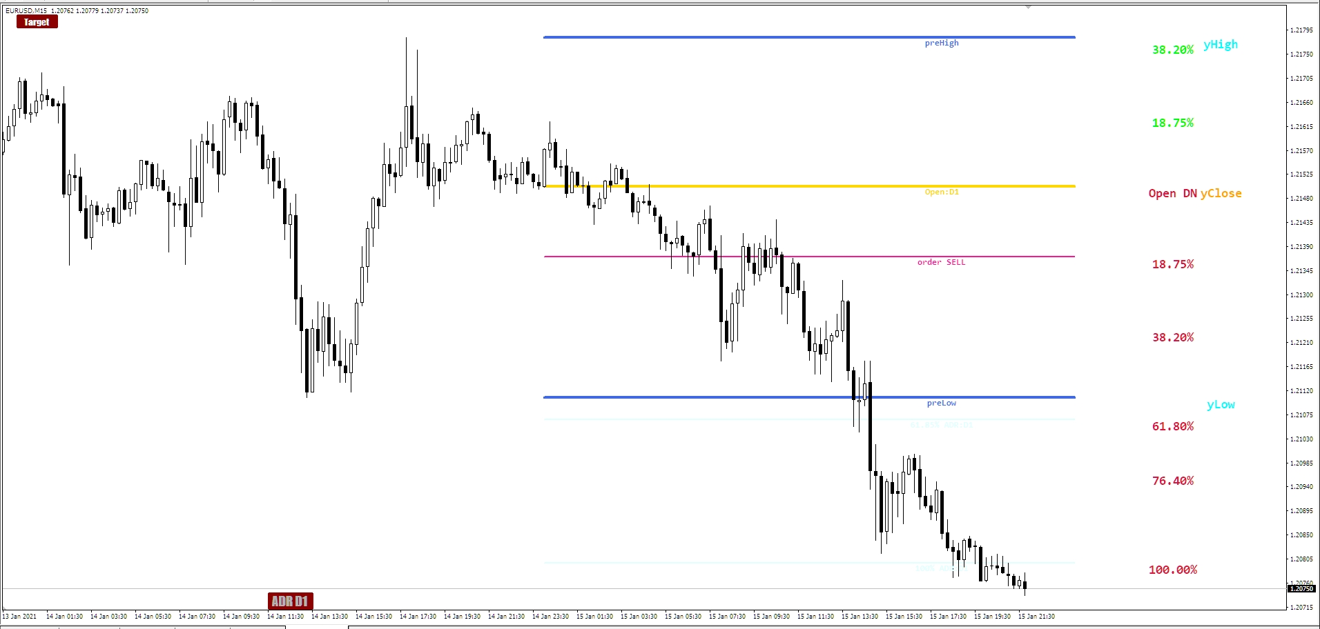 Better visible on black background. You can also see the ADR fibo % lines. The buy line most probably will be shown if price is above the open,