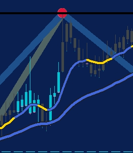 The candle change color from blue to gray when price made a significant high - exit a trade, wait for 2nd dot, wait for color change of candle to blue (closed above trend line) - then reenter (trend continuation).
