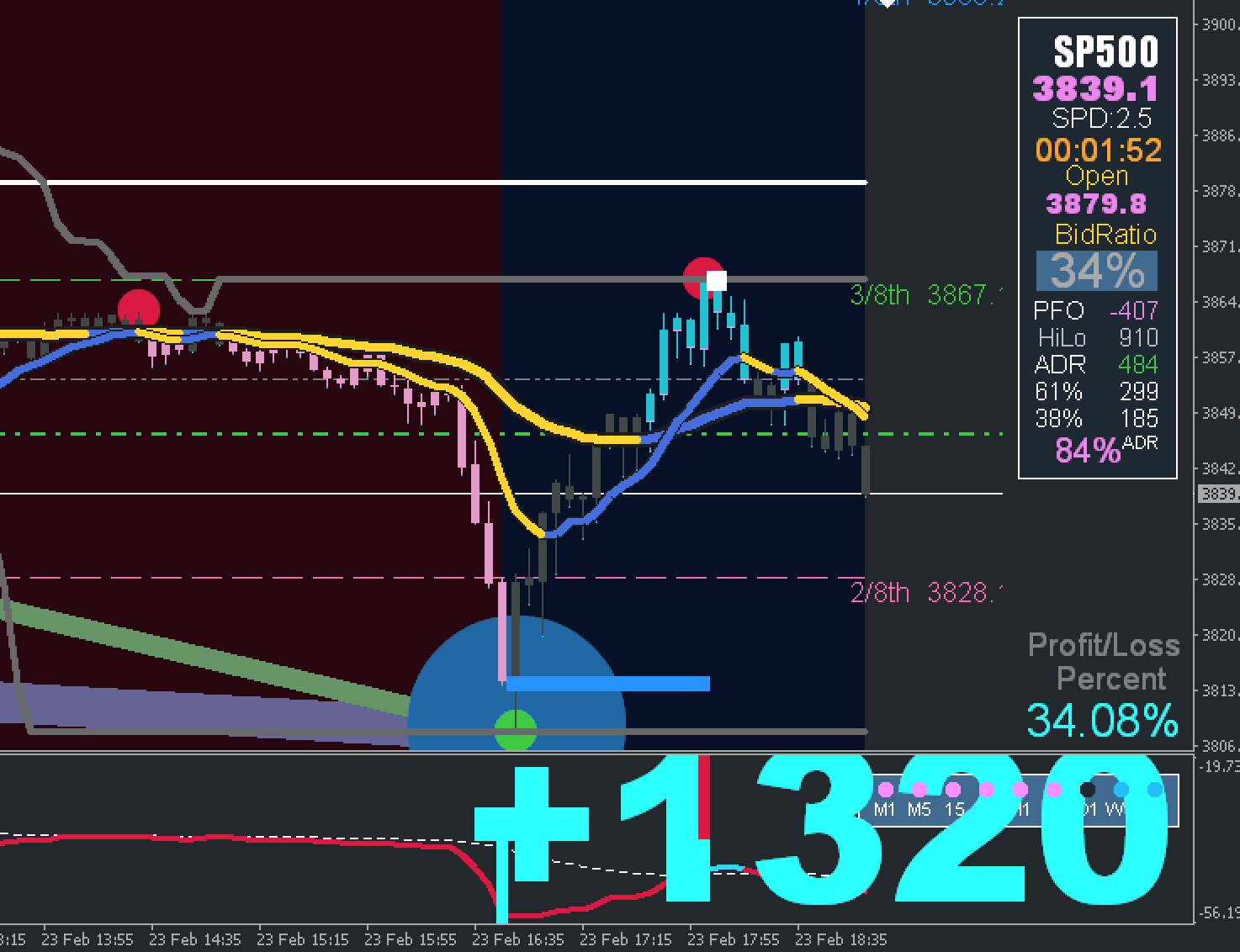 2nd dot from a Red Square and below the Open with a Squeeze from the Goldbands. Also the Trendbox is bearish. Everything screams SELL!