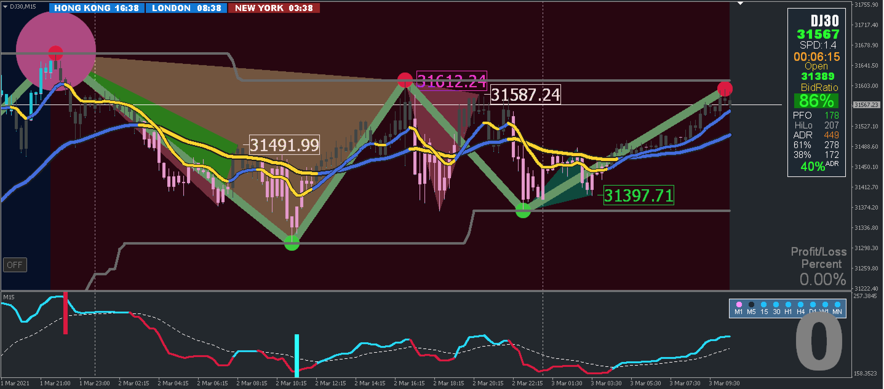 If a look the 1H bias (buy mode) i would have taken 2 buy after the 2 green dot = 2 win