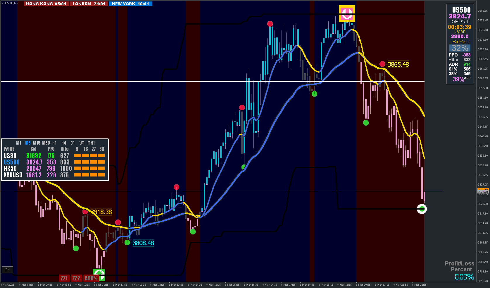Check 1 - ZZ1 + ZZ2 2nd dot (trade only after this is formed)