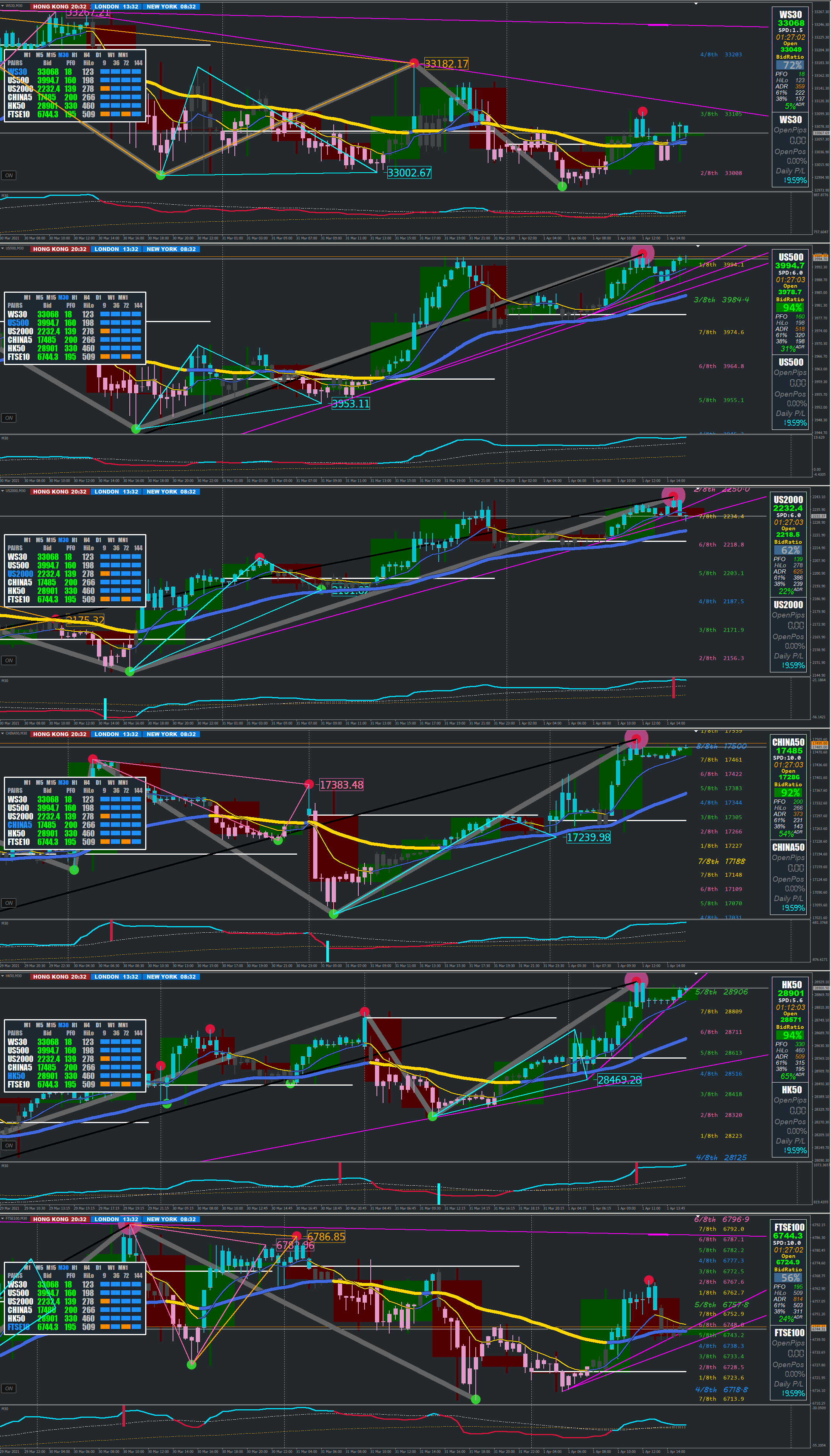 3) The ADR percentage at the bottom - From what I understand it turns green if 62% fib or above is reached and red if 38% fib or below is reached and is greyed out in-between.