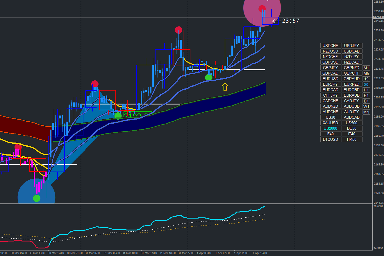 4) In his most recent posts XARD mentions trading the M30 chart, and the alarm changing on pink blue candles, what indicator is the alarm setting switched on and off in for candle changes?