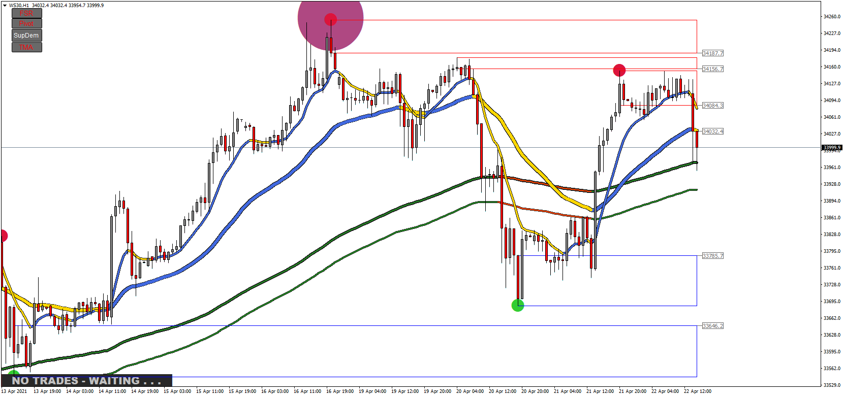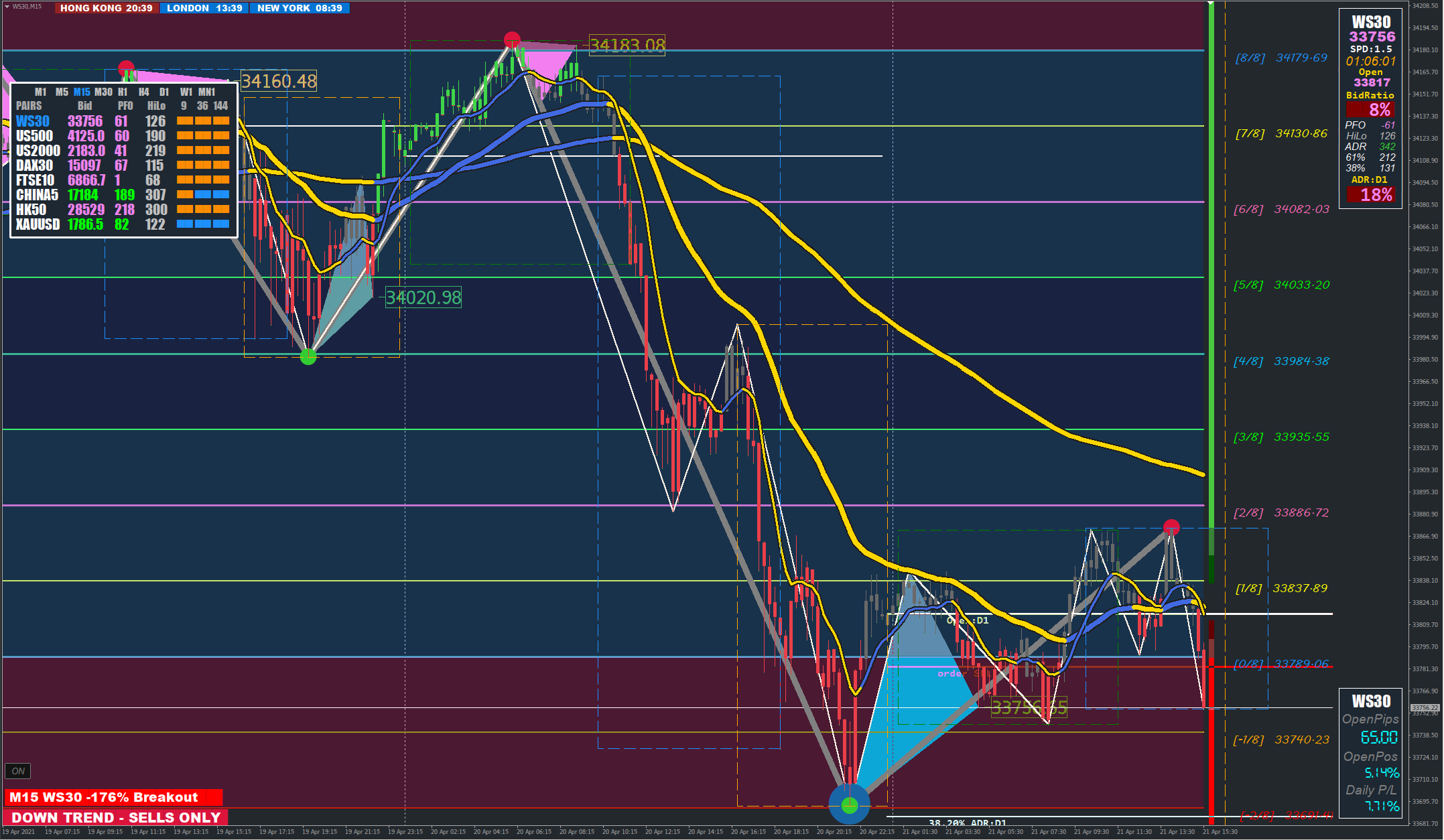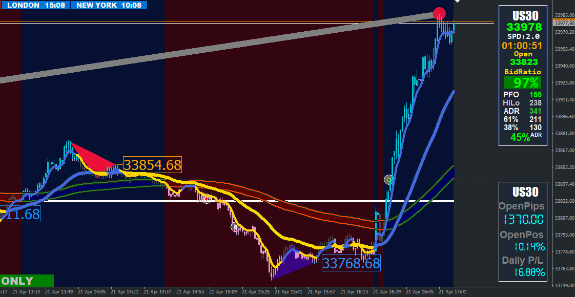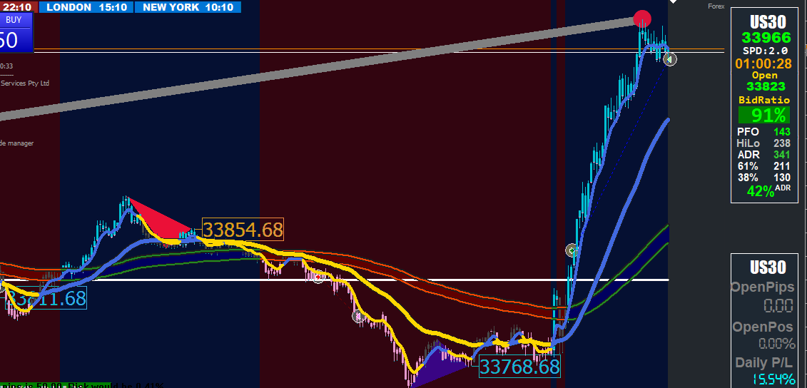 Here is a Down trade on WS30 today using the new setup (release date 20210518)