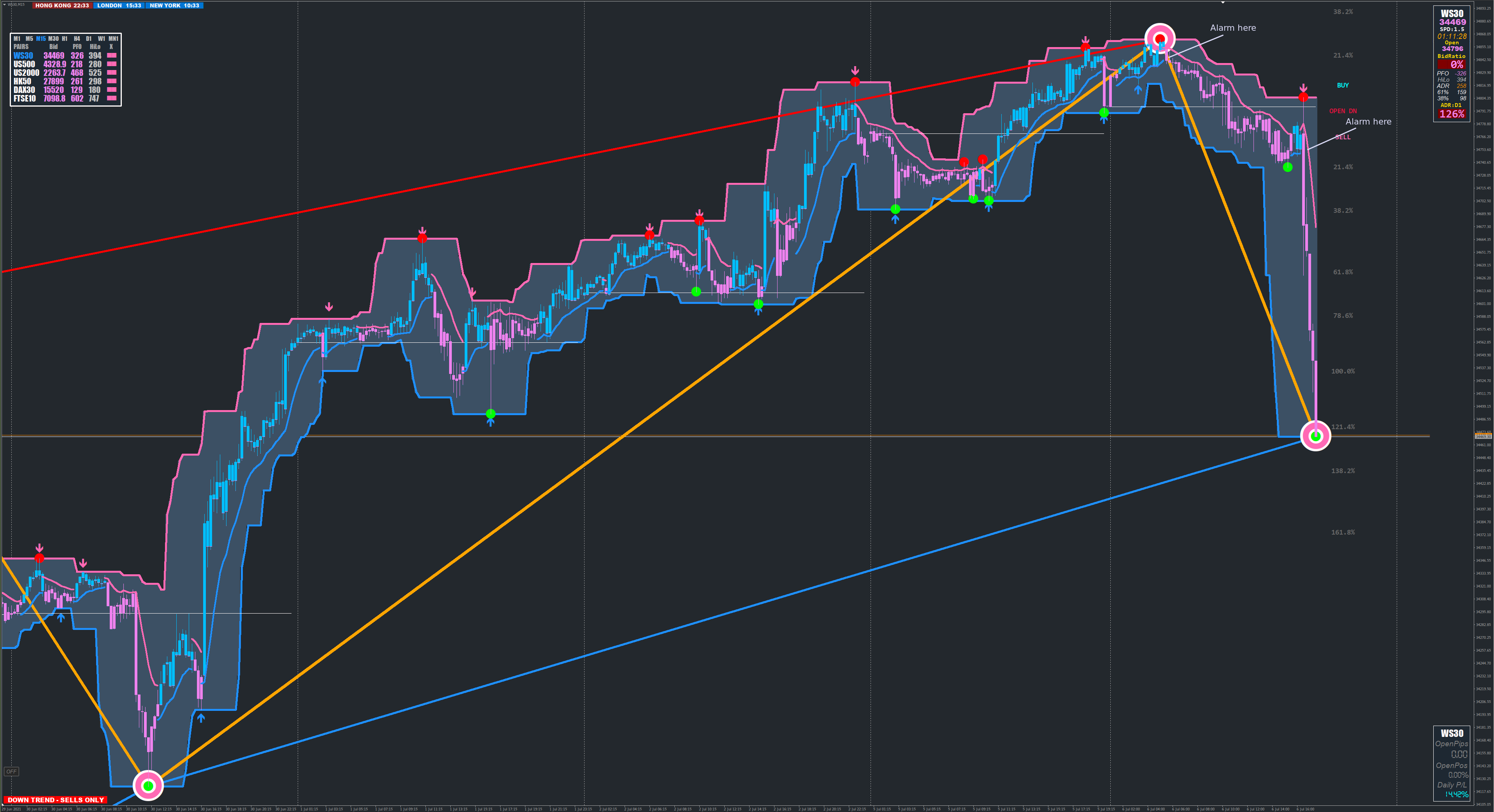 The 30min only gave one alarm this morning at the first cross. However, on the 15min there were two alarms.