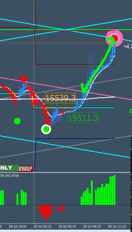 The Golden Nugget move (where the Red Dot is below the Open line & the Green Dot is Above the Open line).