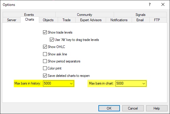 FourXXXX wrote: Wed Oct 06, 2021 5:54 pm Probably because your computer is struggling with the MTF, they do load down your CPU. Try reducing the number of bars in MT4/tools/options/charts.