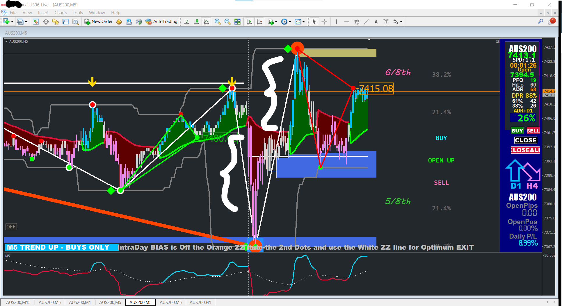 Entries on M1 for better precision. Market open for the AUS200 is usually the highest volatility for the day. Took the initial 4% on the way down and got out. Re-entered once price cleared open and confirmed move up with momentum. Took another 4.99%.