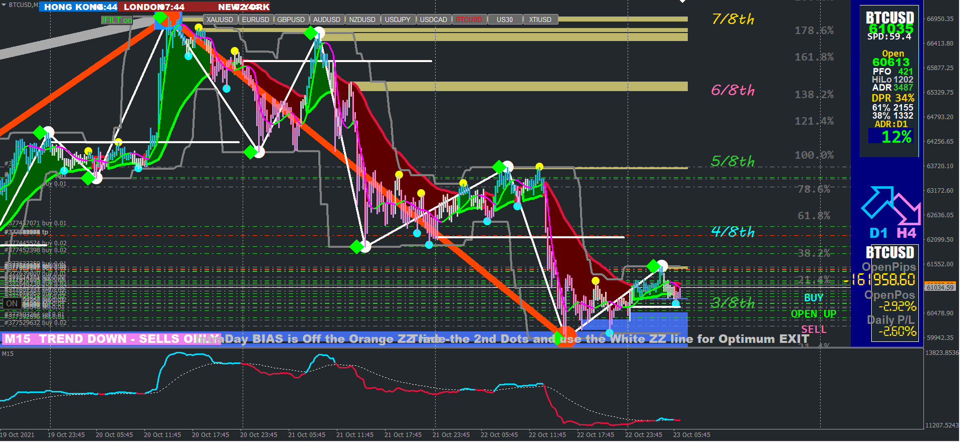 trader2000 wrote: Sat Oct 23, 2021 5:52 pm hi,this is m15 btcusd .. orange dot formed down so up ward bias , then price move up forming green diamond , now we have to wait for price to go down and forming green diamond down to confirm bullish move with other conditions (candle color blue,background of candle color green and vq color blue ) after that will change to m5 tf wait for trigger .. am i right please ?thanks