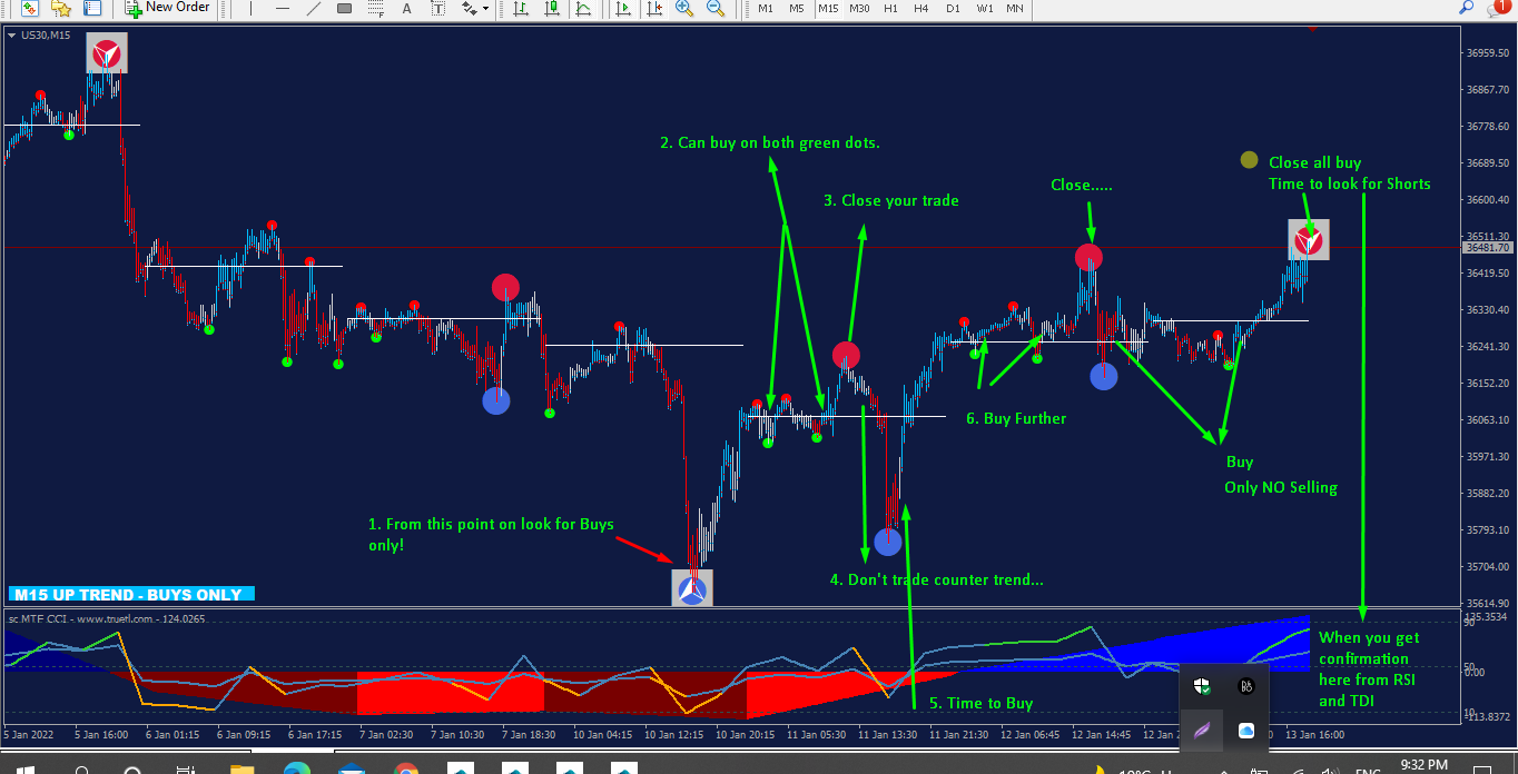 That would be a bit off the topic in this thread, but honestly if you have got the patience, I have got the tools and their proper settings..... And again thanks to this forum and XARD's system, it perfectly aligns with my indicator signals....... The Swing trades with the system demand only one thing from you..... SET and FORGET..... Enter in small micro lots and put Profit Targets 50 Pips apart from each other....... and let the trade run.... That is the only thing it will demand from you.... Let it free.... It won't disappoint you..... Trade in the direction of the bigger dots and keep entering on smaller dots on RSI crosses with CCI confirmation..... I hope the picture is the best illustration of what I mean...... look at the divergence on the last signal..... the latest cross and the pips it brings you if only you let it do its job....... leave me a message, and I will drop you the swing template.... I use it on H4 charts, the rest is all to your discretion...