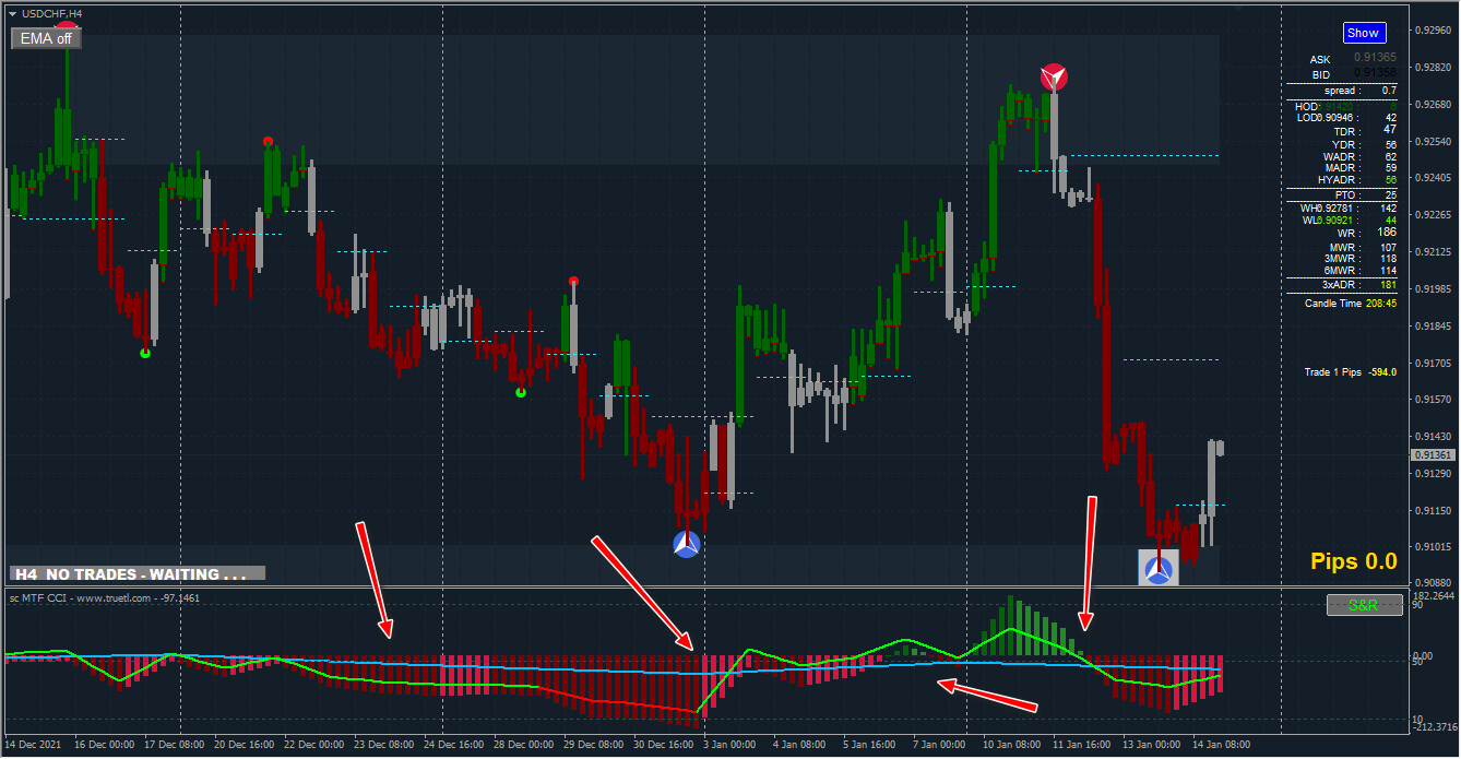 The picture in the above post is with your initial setting for the RSI and the CCI on the H1 chart. I did not change any of the settings of the indicators in the Swing Trade template.