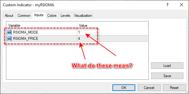 i.e if RSIOMA_MODE 1 = SMA, 2 = EMA, 3 =LWMA etc