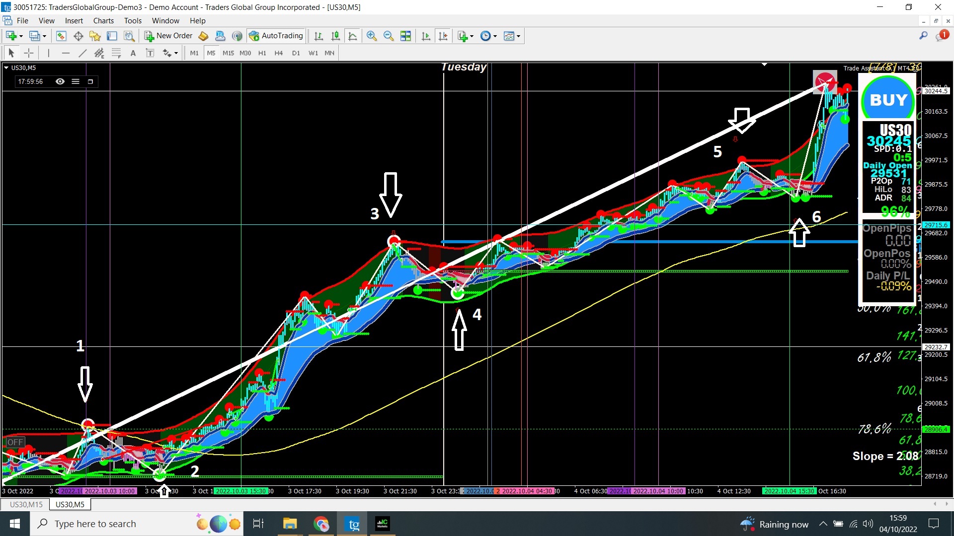 Excellent work there, if you had more time you could have bought again after the next green dot.Castle73 wrote: Tue Oct 04, 2022 9:04 am I only had short window today to trade but came out on top. Thanks, FourXXXX. I love the set up.